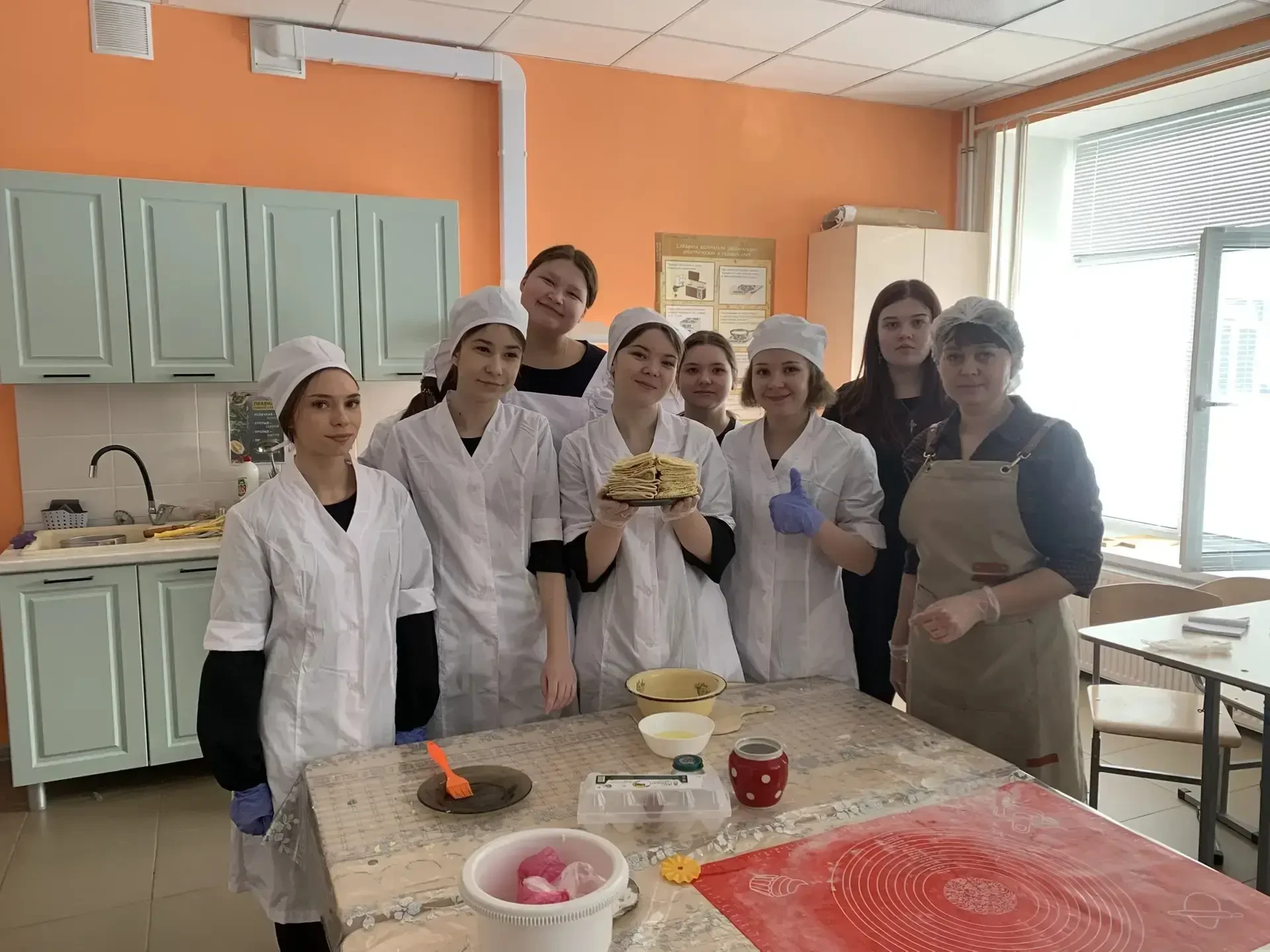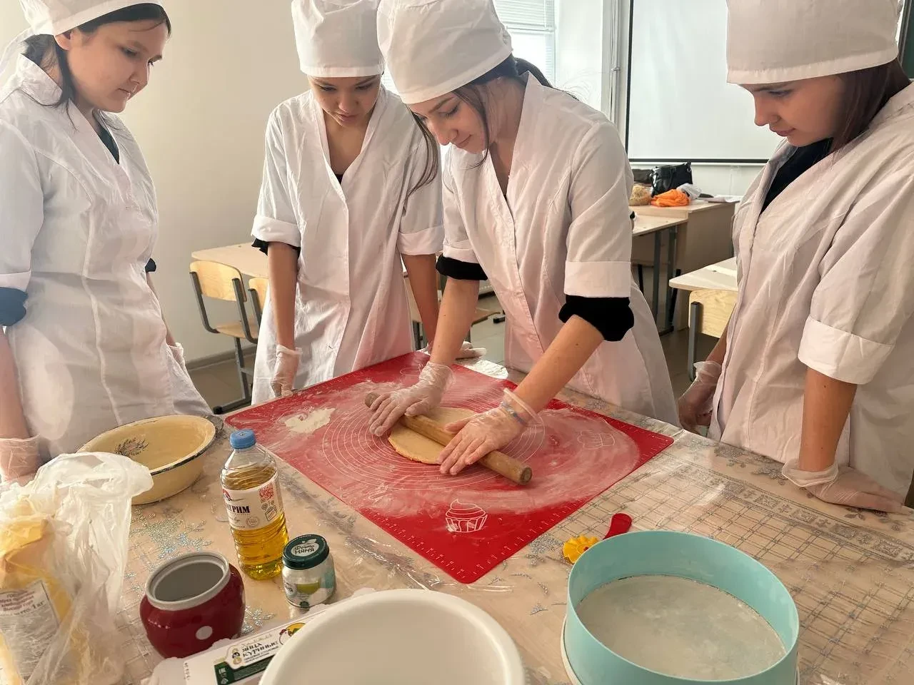 Обучающиеся 7Б класса приняли участие в мастер-классе, где учитель труда (технологии) Лилия Бариевна поделилась секретами приготовления🍝🍲 «туҡмаса»– домашней лапши.
