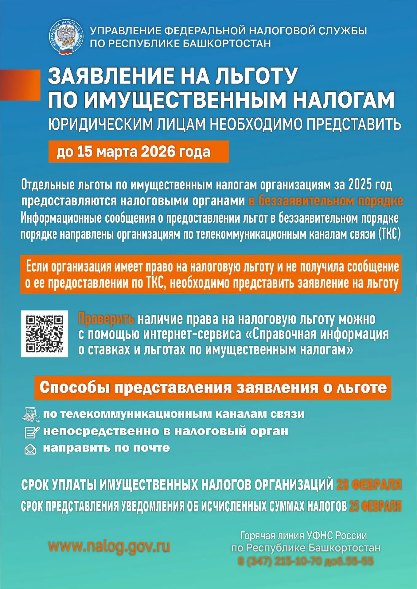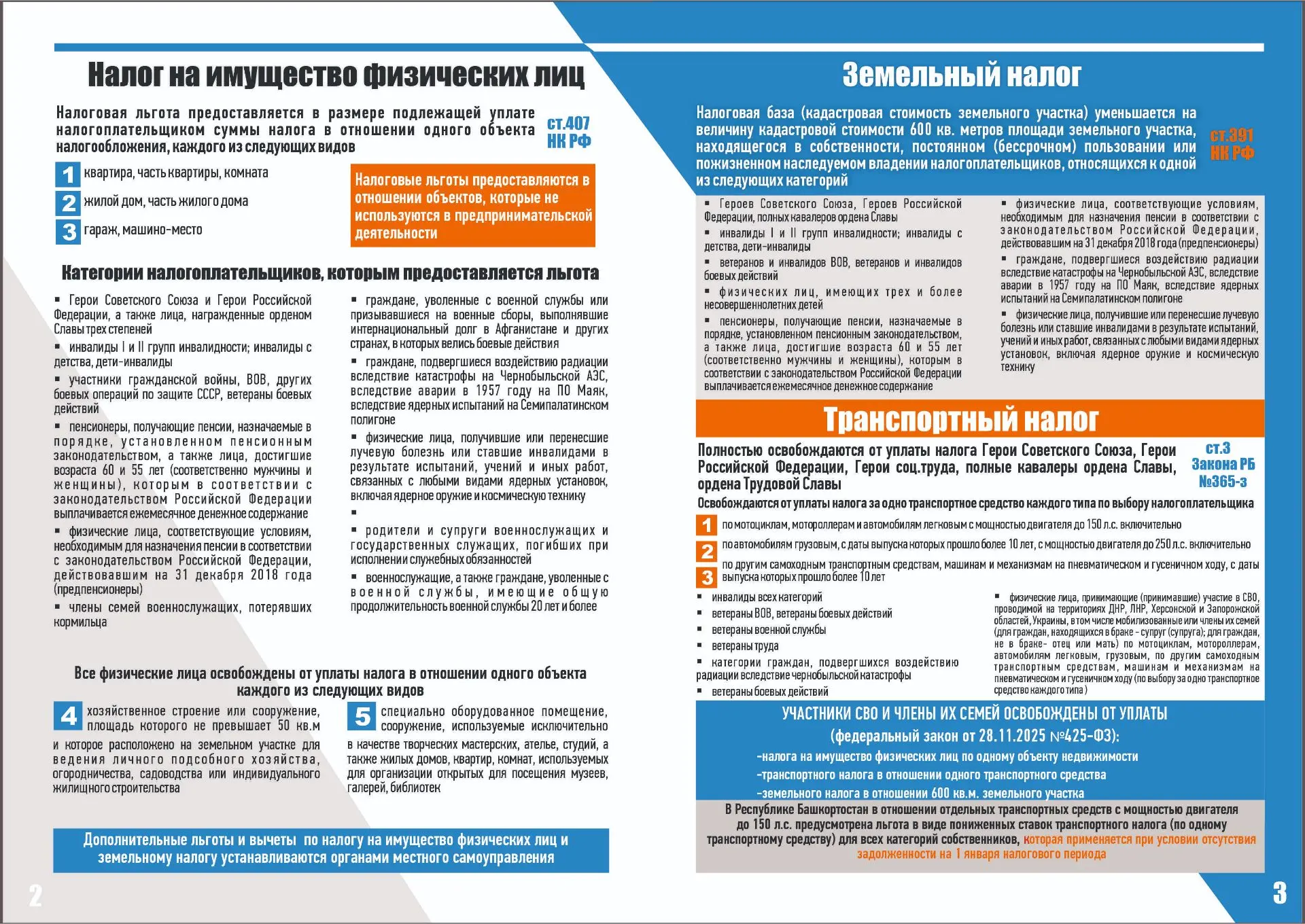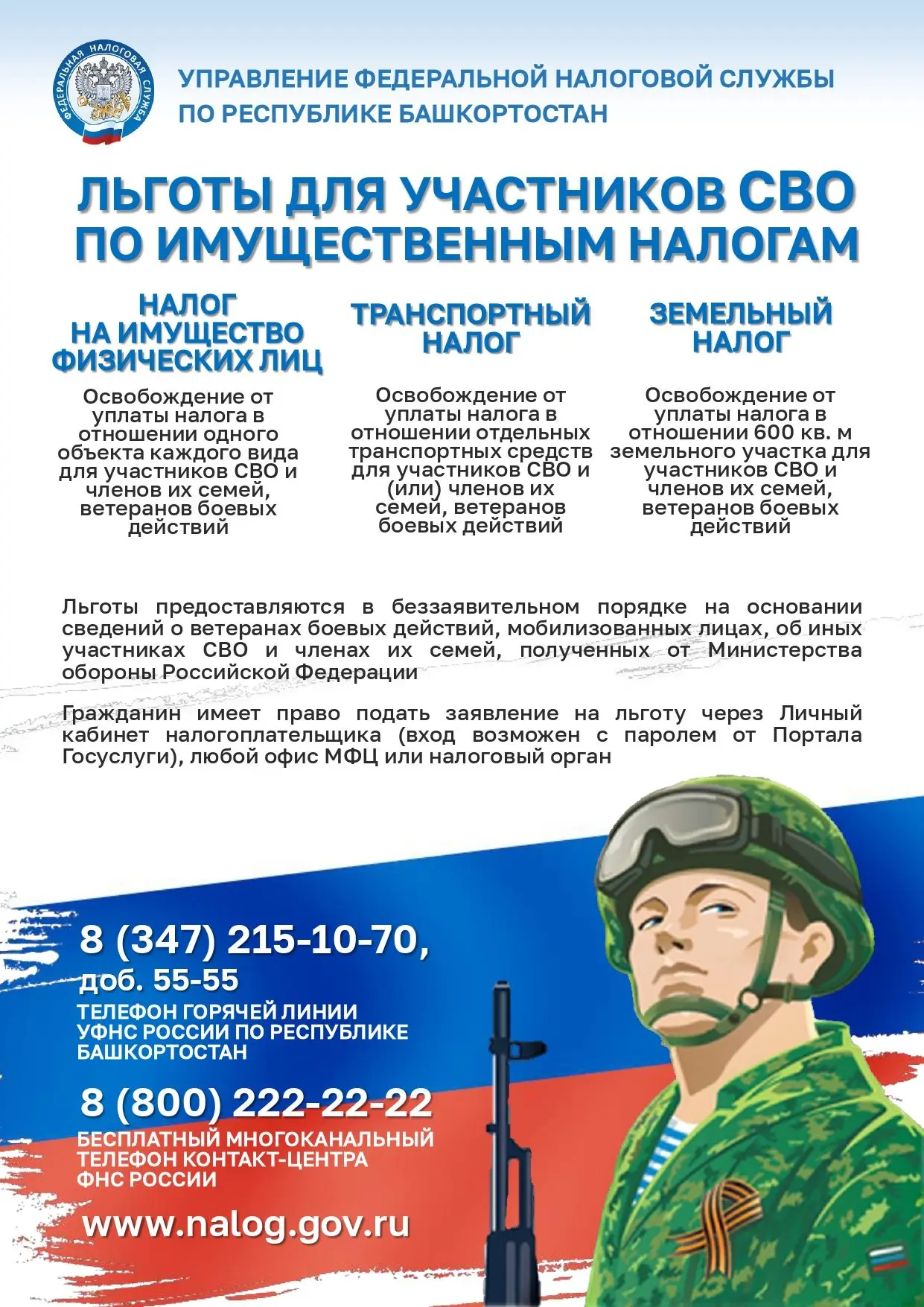 ❗️Информация к сведению от территориальной Федеральной налоговой службы России по Республике Башкортостан о налоговых льготах при налогообложении имущества за 2025 г. и о порядке их предоставления многодетным семьям и семьям участников СВО.