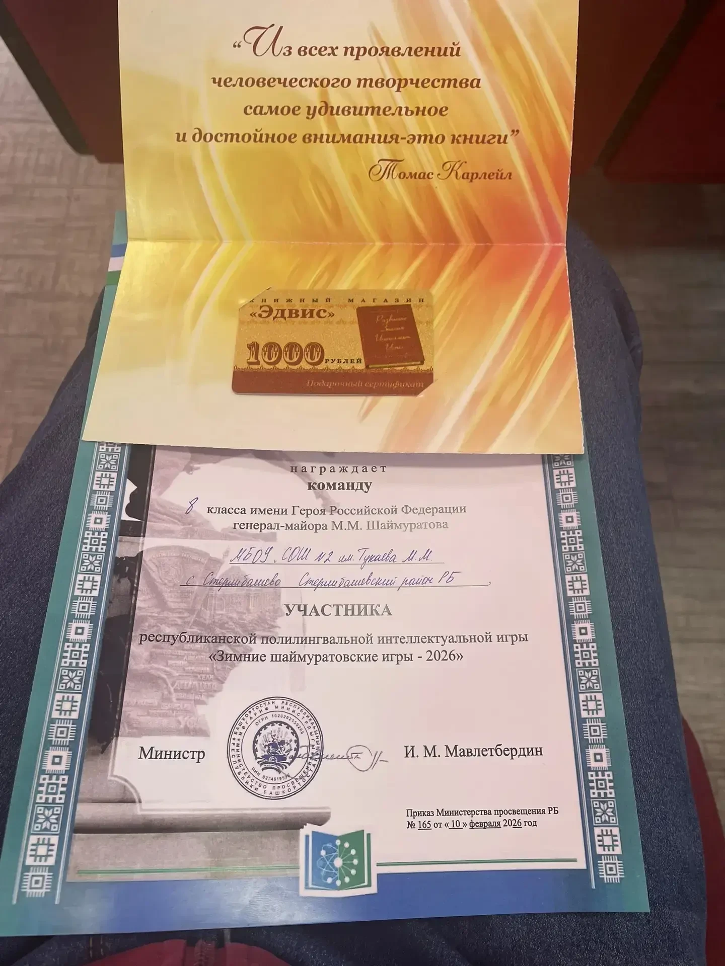 Марсель — активный участник индивидуальных и коллективных творческих конкурсов: танцевальных, чтецов, конкурса видеороликов. 💫Звуки народного курая в его исполнении обретают особую проникновенность, а чтение стихов — истинную глубину. Он доказал это, став финалистом международного конкурса поэтической декламации «Зимние строки», в рамках культурно-творческих инициатив. В 2025-2026 учебном году он стал призером муниципального этапа Всероссийской олимпиады школьников по истории и обществознанию. Также в составе команды на муниципальном этапе стал призером в интеллектуальной олимпиаде Приволжского федерального округа «Что? Где? Когда?».