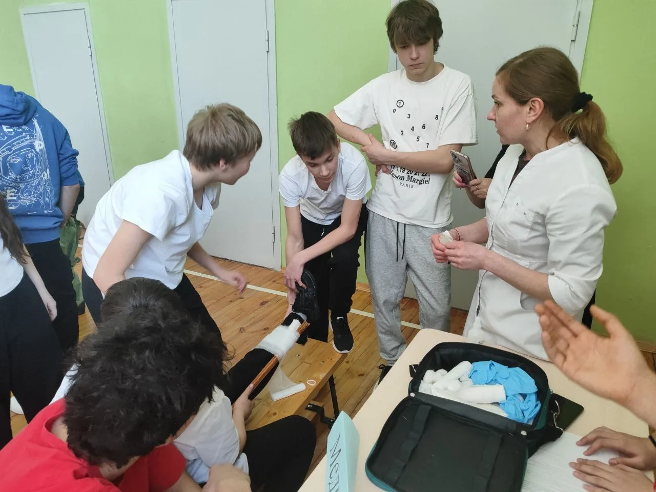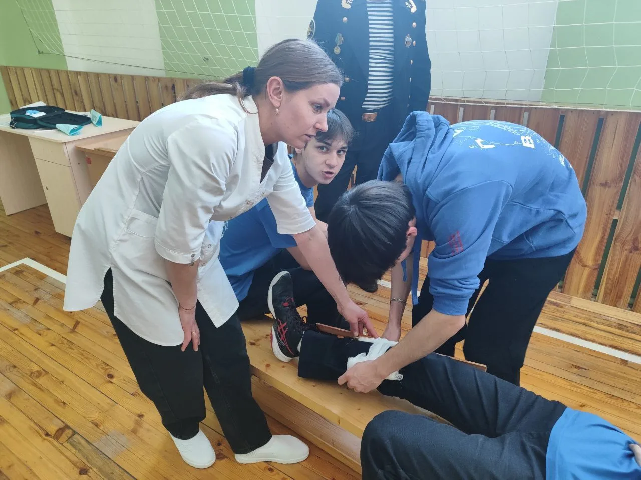 ⚡️физические упражнения включали подтягивания и тренировку пресса, способствуя развитию физической выносливости. - На площадке оказания первой помощи;