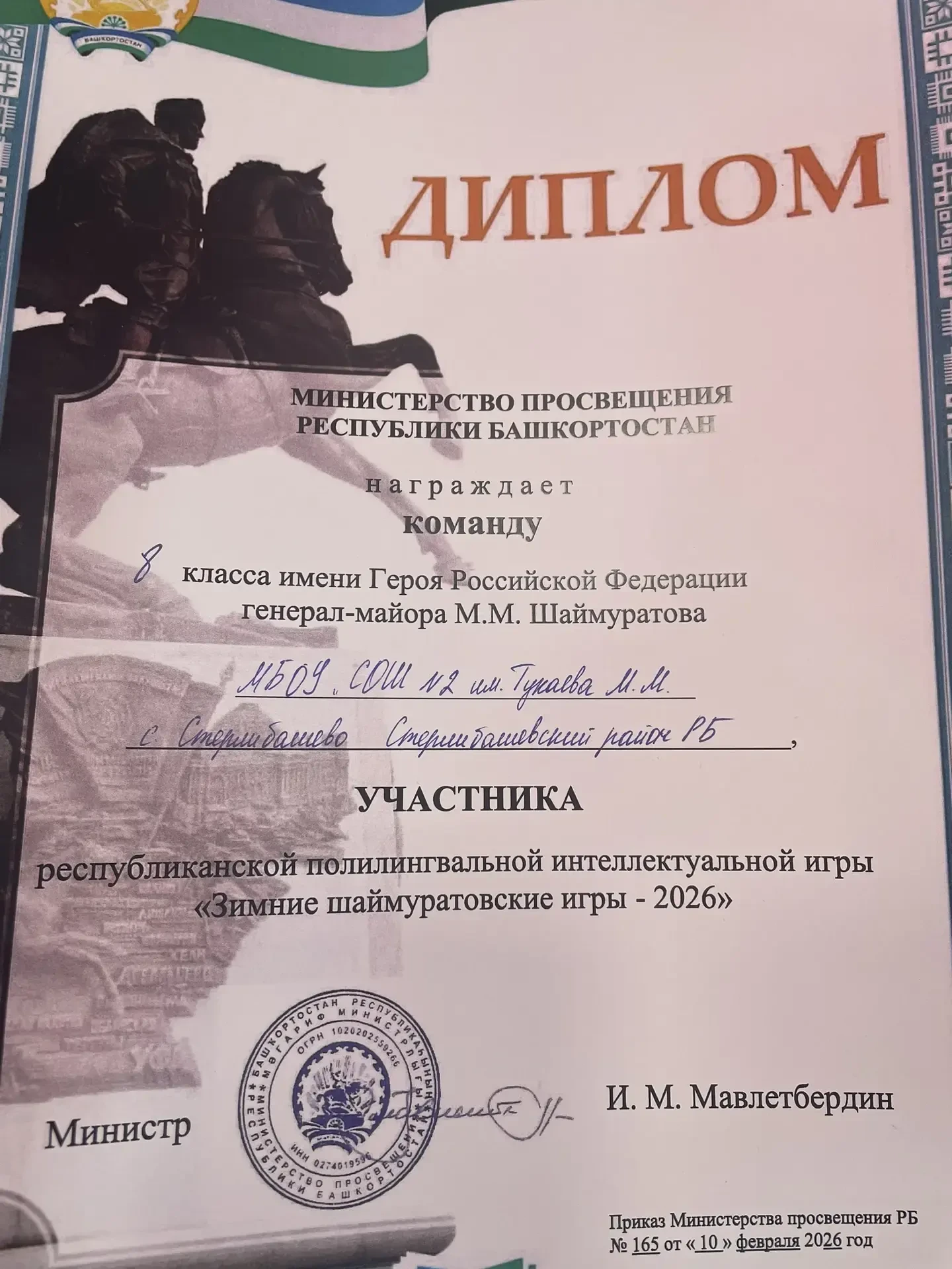 Название школы: МУНИЦИПАЛЬНОЕ БЮДЖЕТНОЕ ОБЩЕОБРАЗОВАТЕЛЬНОЕ УЧРЕЖДЕНИЕ СРЕДНЯЯ ОБЩЕОБРАЗОВАТЕЛЬНАЯ ШКОЛА №2 С.СТЕРЛИБАШЕВО ИМЕНИ ТУКАЕВА МУХАМЕДШАКИРА МУХАМЕДХАРИСОВИЧА МУНИЦИПАЛЬНОГО РАЙОНА СТЕРЛИБАШЕВСКИЙ РАЙОН РЕСПУБЛИКИ БАШКОРТОСТАН