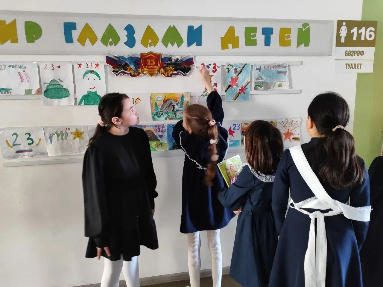 Отрадно, что выставка привлекает внимание и ребята с увлечением её рассматривают. В своих работах ребята выразили гордость, 💔любовь и уважение к празднику Защитников Отечества.