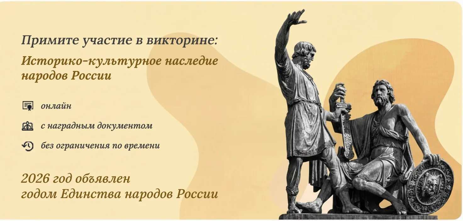 🎓 На сайте сетевого издания «Образовательное пространство» открыта викторина: «Историко-культурное наследие народов России»