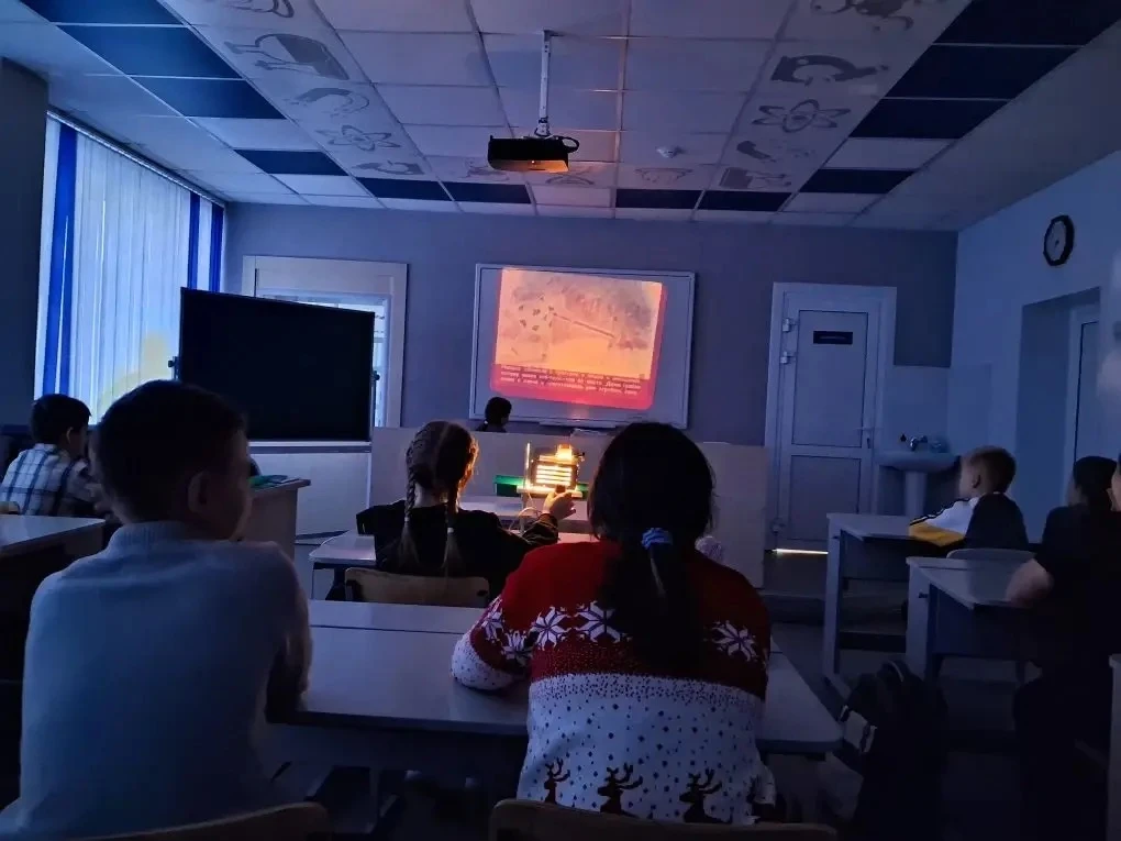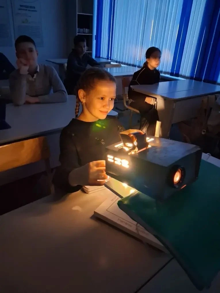 ✨Ребята с интересом рассматривали аппарат, по очереди крутили ролик и меняли слайды мультика, а также читали внутрикадровые надписи к слайдам с экрана.