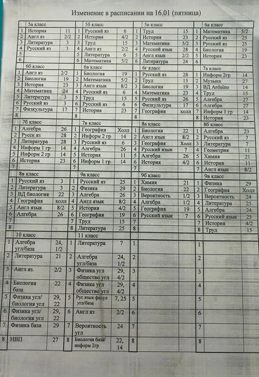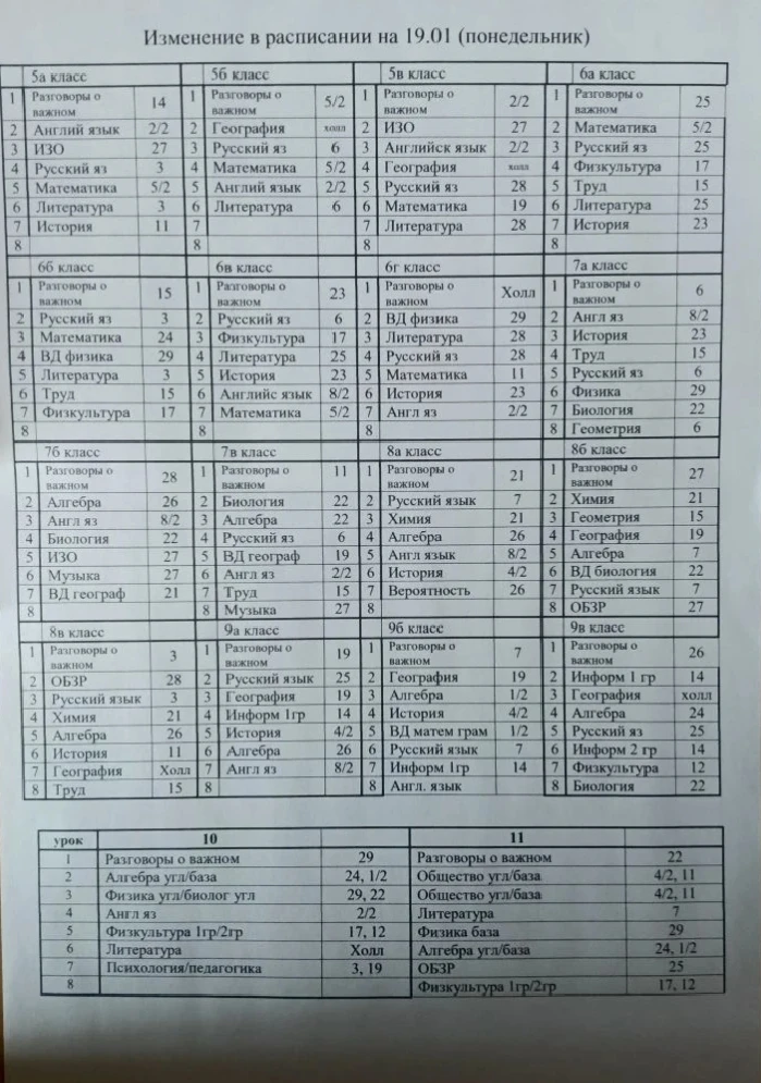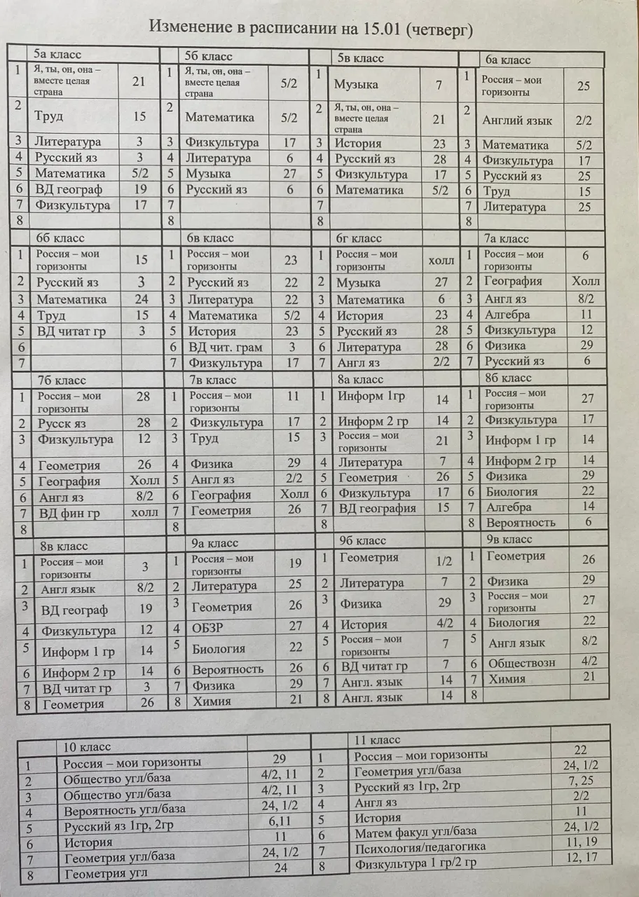 Добрый день. На понедельник произошли изменения в расписании 5-11 классов