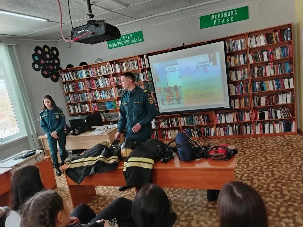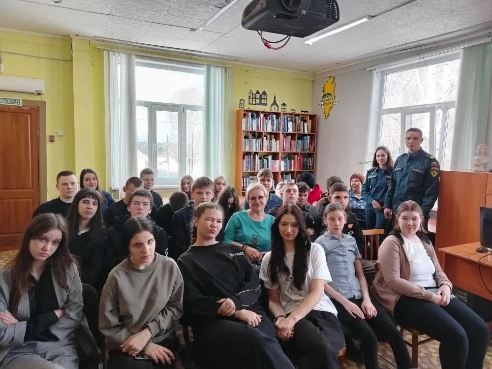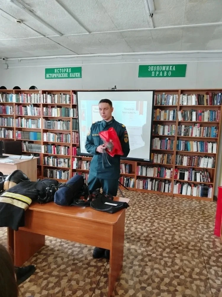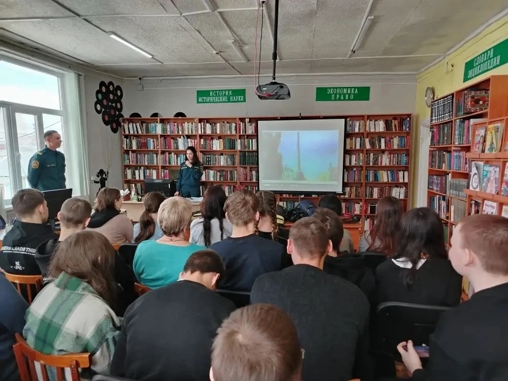 В библиотеке города Лесосибирска прошёл урок пожарной безопасности для учащихся 8‑х и 9‑х классов нашей школы.