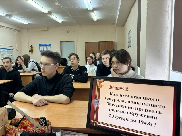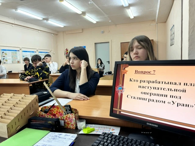 В преддверии этого знаменательного дня в 9-11 классах прошли уроки, посвященные Сталинградской битве. А в конце урока ребята проверили свои знания при помощи викторины.