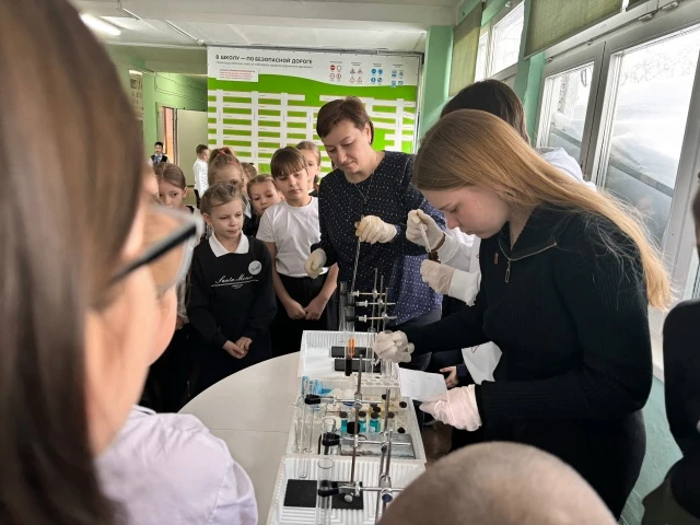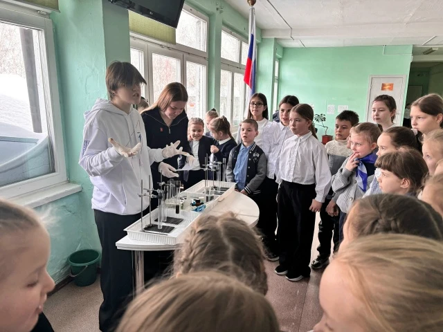 В преддверии Дня российской науки участники Первичного отделения Движения Первых организовали для младших школьников познавательные перемены, где при помощи разных опытов демонстрировали ребятам различные химические законы.