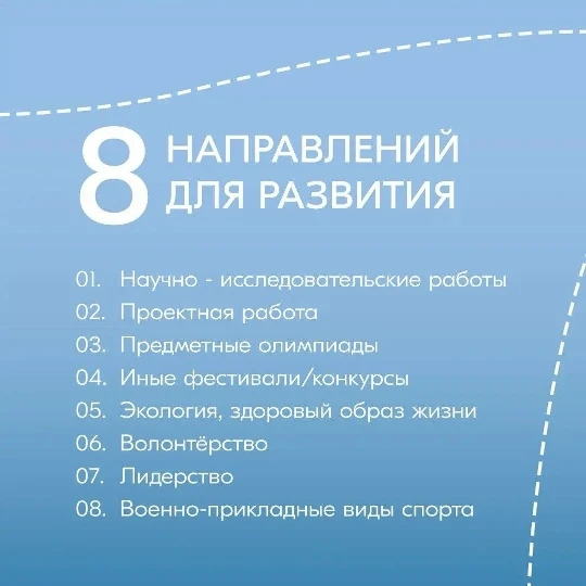 Также доступны дополнительные возможности: образовательные программы, поездки по России, путёвки в детские центры и бонусы к портфолио при поступлении.