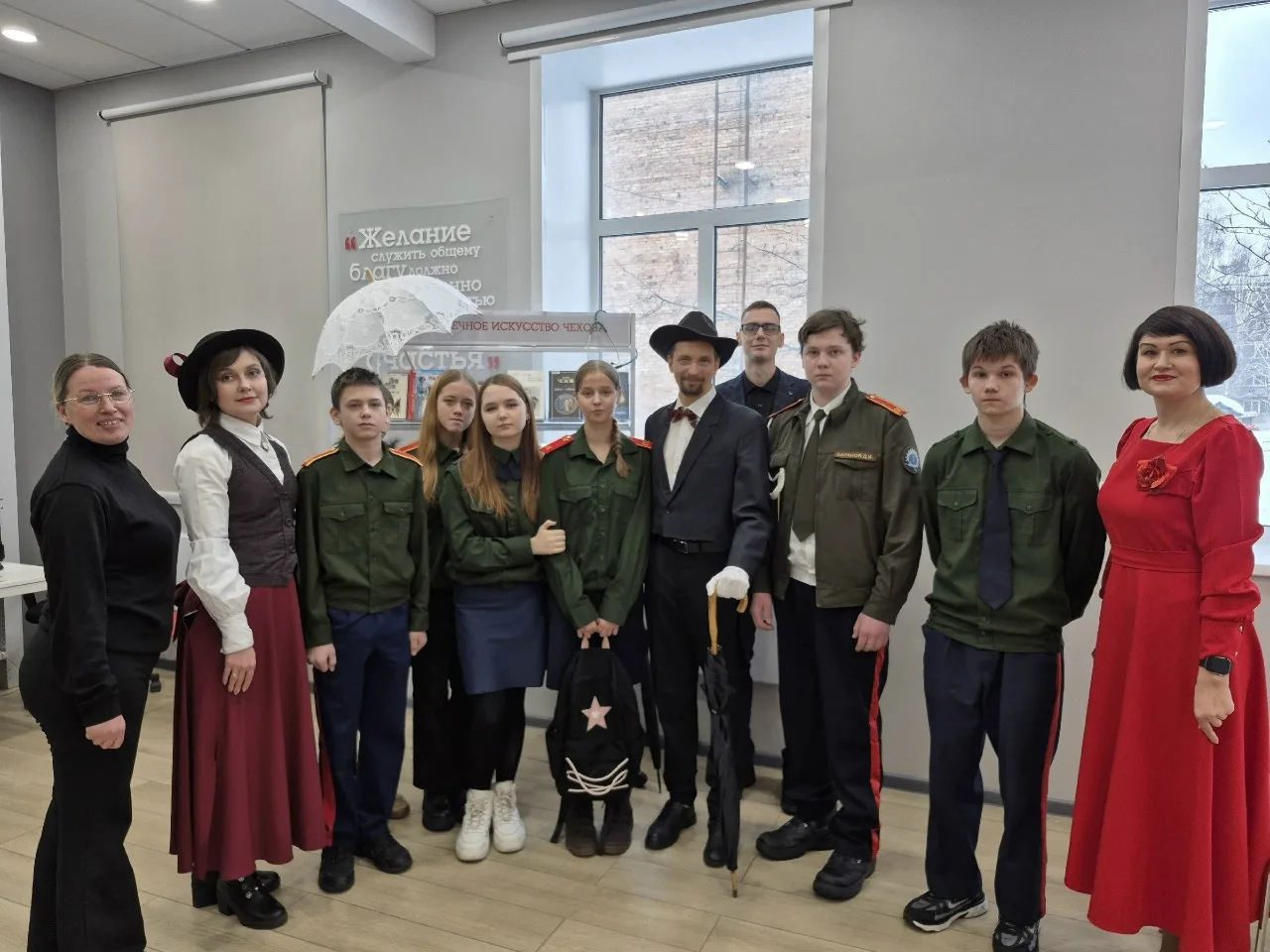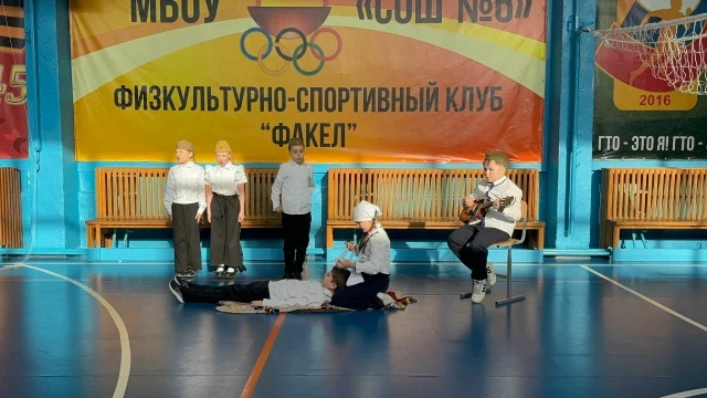 Ученики нашей школы, восьмиклассники, юнармейцы и участники ВПК «Беркут», стали участниками блистательного выступления Натальи Горячевой — народной артистки РФ, актрисы Красноярского драматического театра им. А.С. Пушкина.