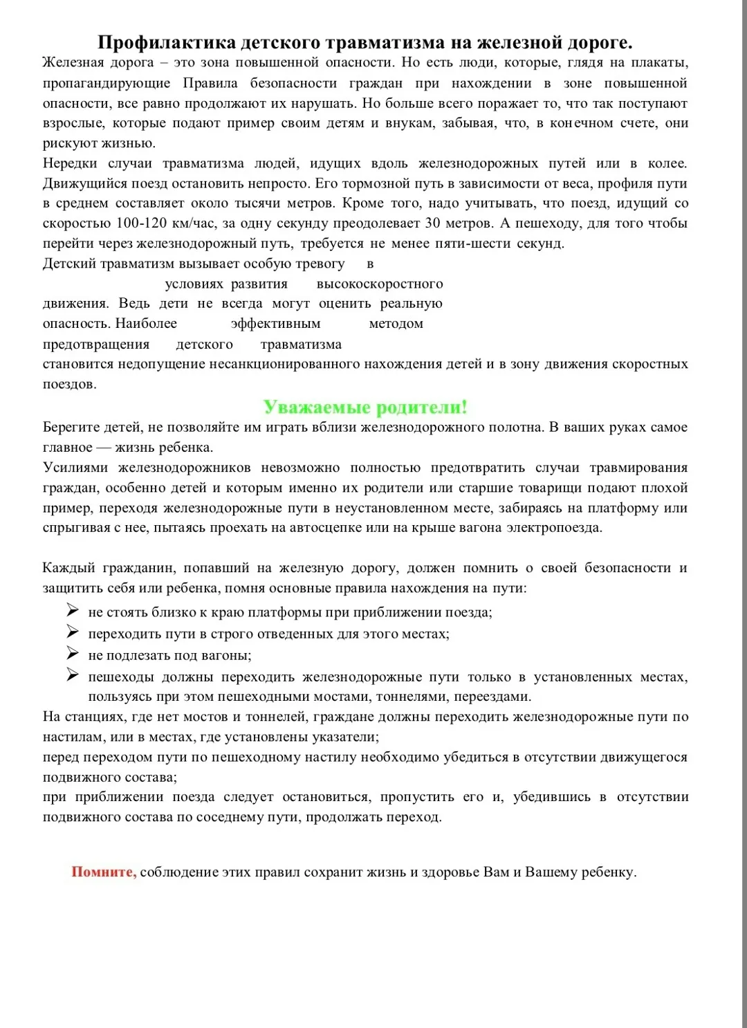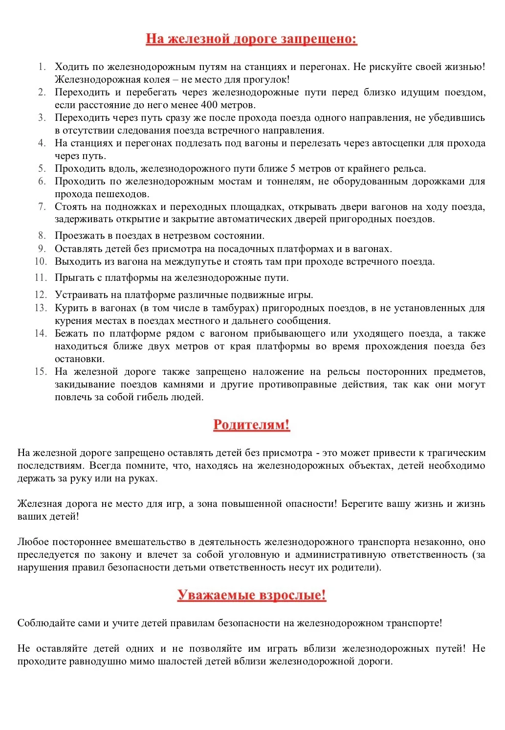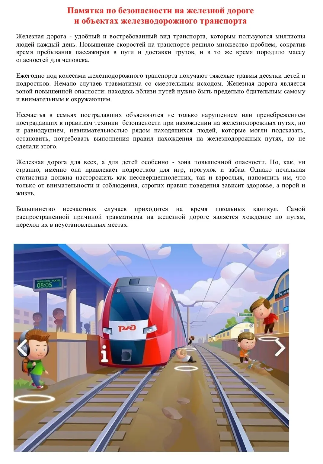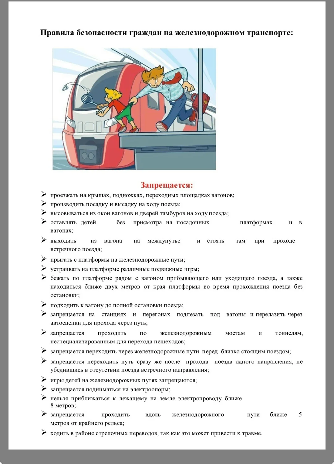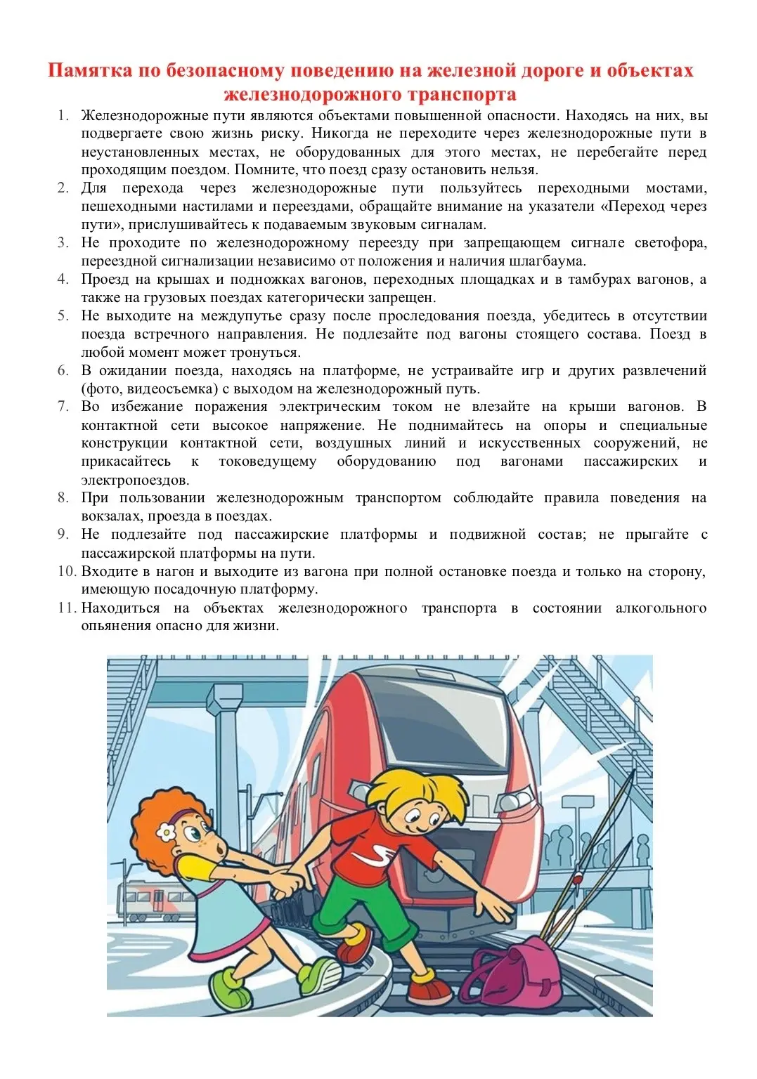 Памятка по безопасности на железной дороге и объектах железнодорожного транспорта!