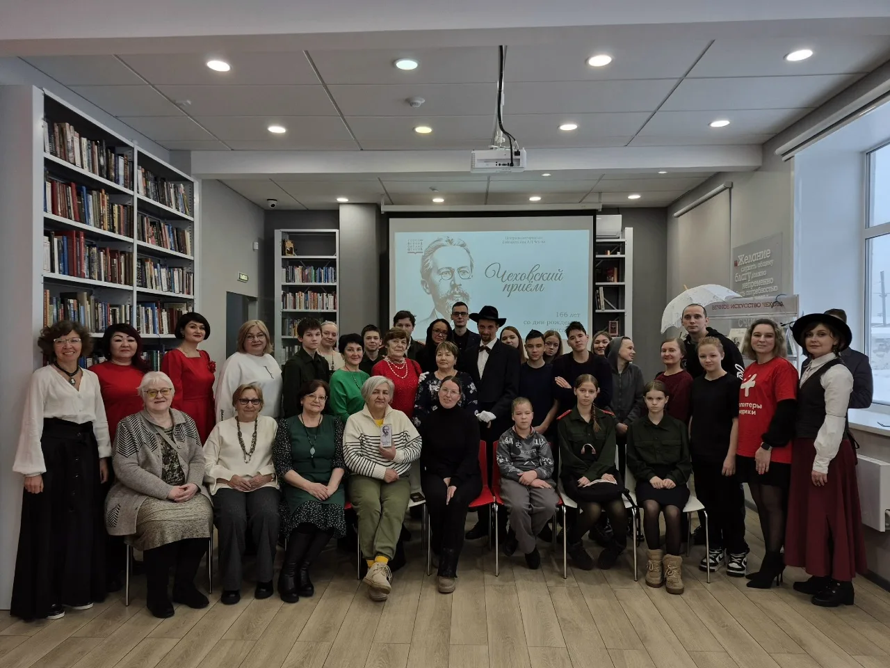 День рождения Антона Павловича Чехова отметили вчера в библиотеке. Сразу два Чехова предстали перед гостями в этот вечер! Неожиданный прием, но весьма удачный. Они спорили о литературе, традициях, читательских предпочтениях и пр.В этом году Чеховский прием включал три ведущие темы: детство писателя, его профессиональная деятельность, как врача, и тема многонациональности в его произведениях.Игровая программа "Чеховский саквояж" заставила гостей активизироваться, судите сами, кроме традиционных вопросов викторины, они еще с азартом искали сладкий сюрприз. В последствии выяснилось, что их оказалось даже два!Любителей творчества ждал мастер-класс по созданию памятной открытки в необычной кофейной технике. Здесь же гости могли выпить кофе и поделиться впечатлениями.
