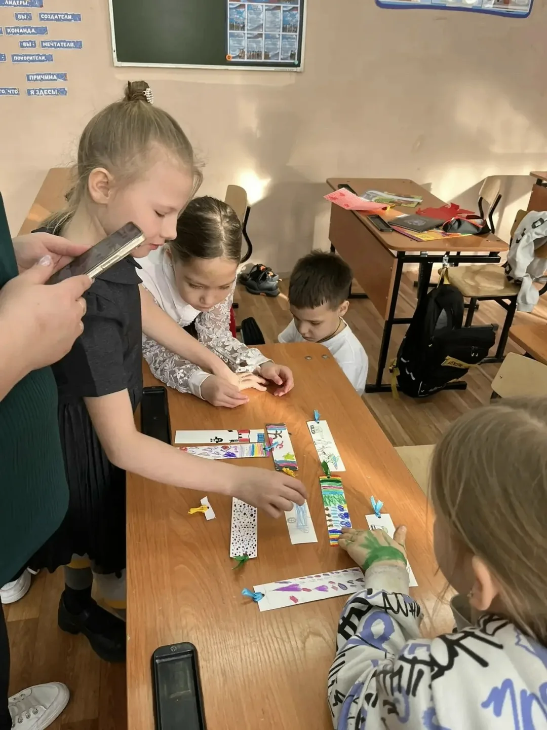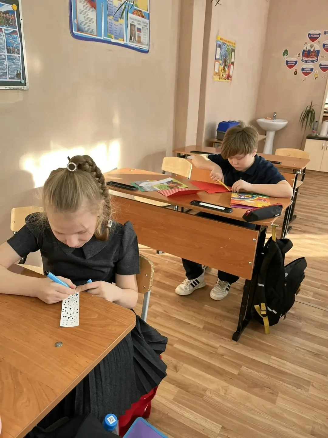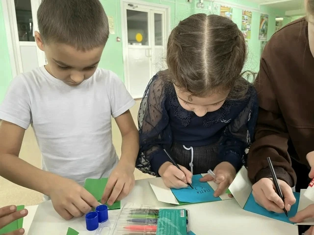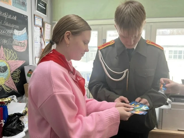 Активисты Движения Первых провели для младших школьников матер-классы по изготовлению поздравительных открыток на День защитника Отчества.