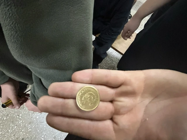 Ребята познакомились с историй появления денег, узнали какие они были раньше и сами изготовили юбилейную монету.