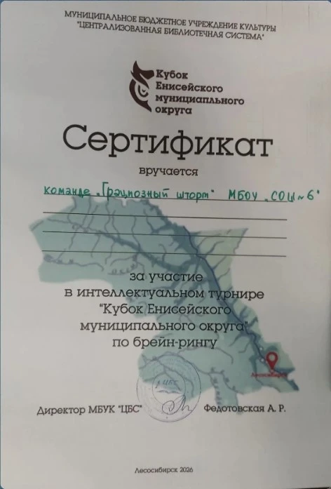 МБОУ "СОШ №6 г. Лесосибирска" команда "Выбор"
