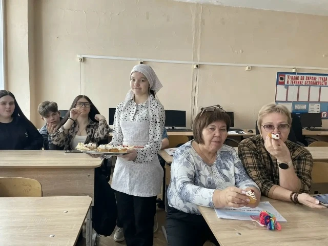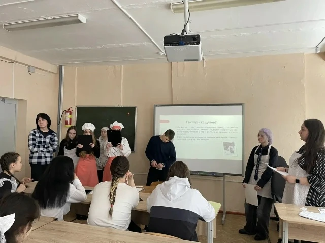 Ученики , в сопровождении классных руководителей , подготовили презентации , инсценированные эпизоды профессиональных умений (мастера маникюра делали маникюр , специалисты по наращиванию ресниц накладывали ресницы) и даже угостили собственной выпечкой, представляющие профессию кондитера.