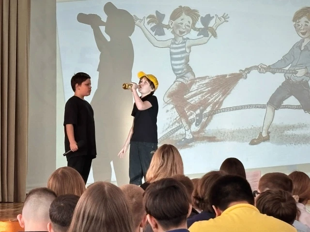 В преддверии Всемирного дня театра школьная студия "Открытие" представила ученикам и родителям нашей школы инсценировку "Денис Кораблёв и компания" по мотивам произведений В. Драгунского "Денискины рассказы".