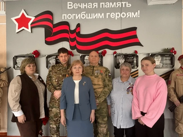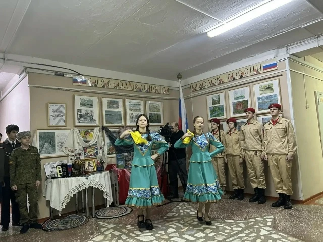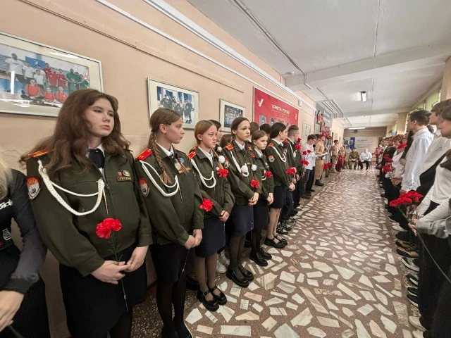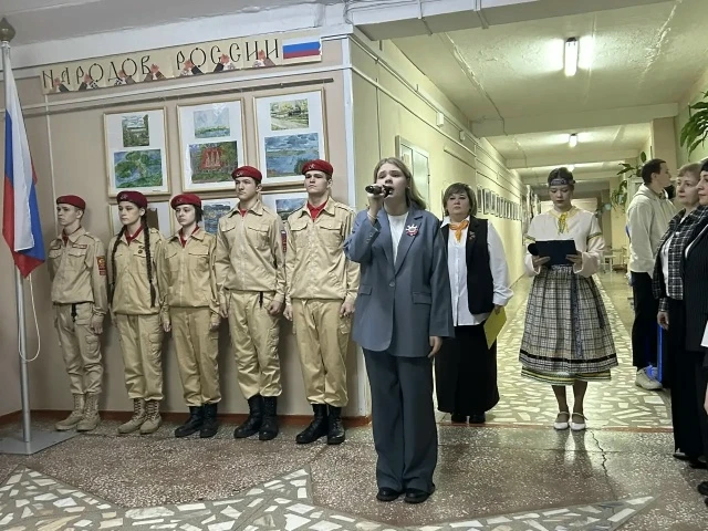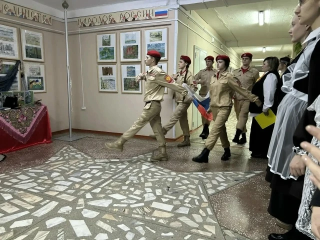 Открывая мероприятие, директор школы Ольга Васильевна Гришкова поздравила всех присутствующих с праздником. Пожелала ученикам развиваться, стремиться к успеху, но самое главное – быть патриотами своей Родины, равняться на героев и защитников нашего Отечества.