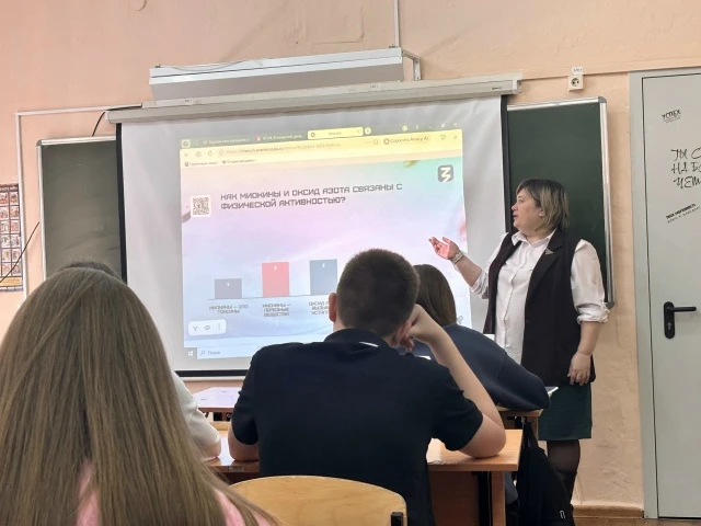 Урок -лекция проходил в формате квиза на знание правил здорового образа жизни, правильного питания и физической активности. Ребята отвечали на вопросы при помощи телефонов, подключенных к живой презентации, разработанной Российским обществом Знание.