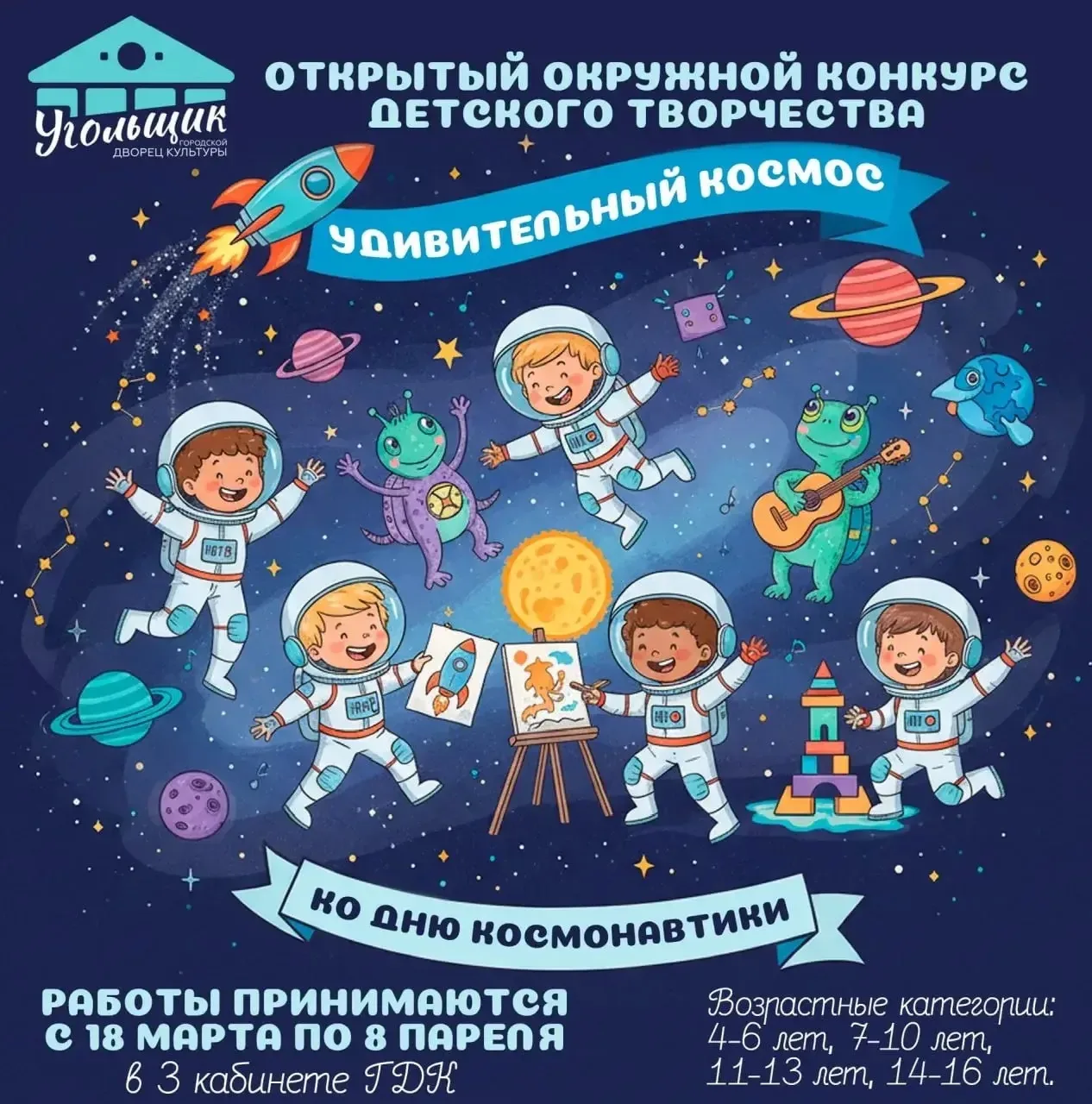 ▶️Городской Дворец культуры "Угольщик" приглашает к участию в конкурсе творческих работ "Удивительный космос", посвященном Дню Космонавтики.