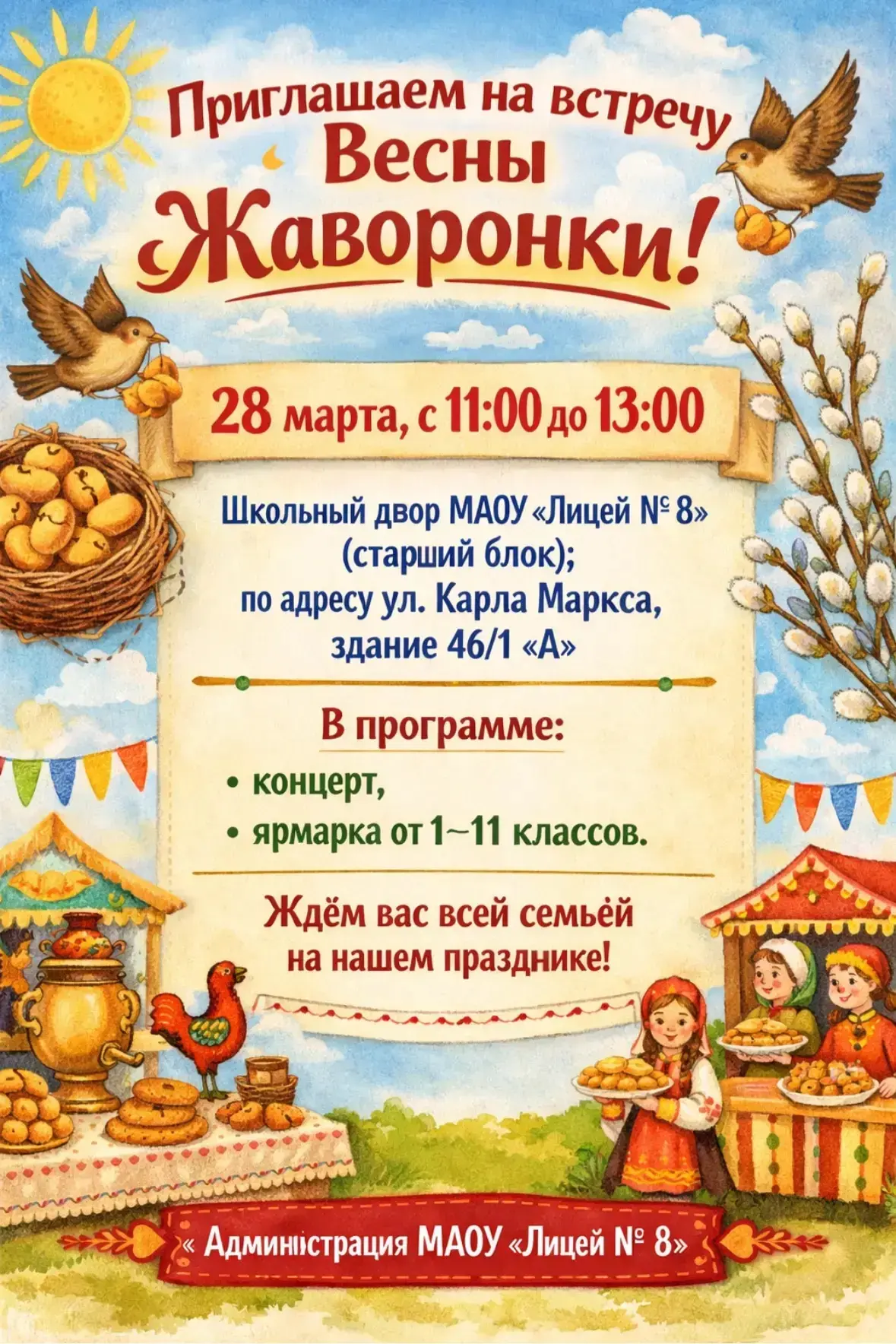 28 марта в 11.00 состоится родительское собрание будущих первоклассников, на организационное собрание по набору в первый класс.