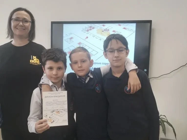 🏆 Победители среди начальных классов — команда 3 инженерного класса под руководством Поворознюк Натальи Евгеньевны. В составе: Ляйком Георгий, Фейзов Марат, Симонов Дмитрий. Ребята проявили высокий уровень подготовки и стали лучшими среди младших участников!