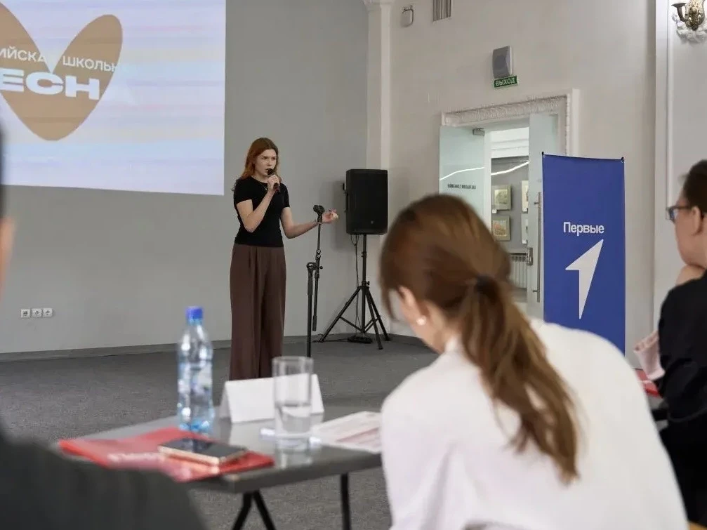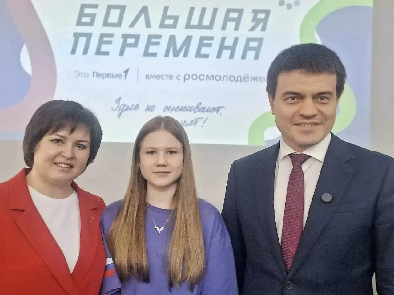 Среди участников встречи была ученица Гимнезии Анастасия Стрижнева и её наставник, советник директора по воспитанию, Ольга Сергеевна Большакова.