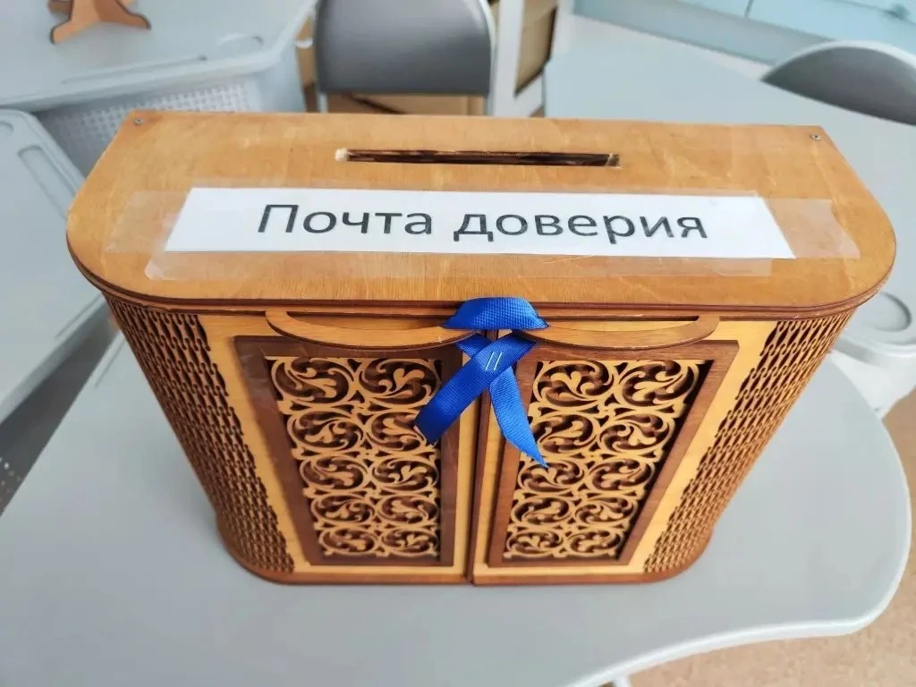 На входе в Гимназию размещена памятка с телефонами доверия, а также организована "Почта доверия" — ящик, куда можно анонимно опустить записку с актуальным запросом или вопросом.