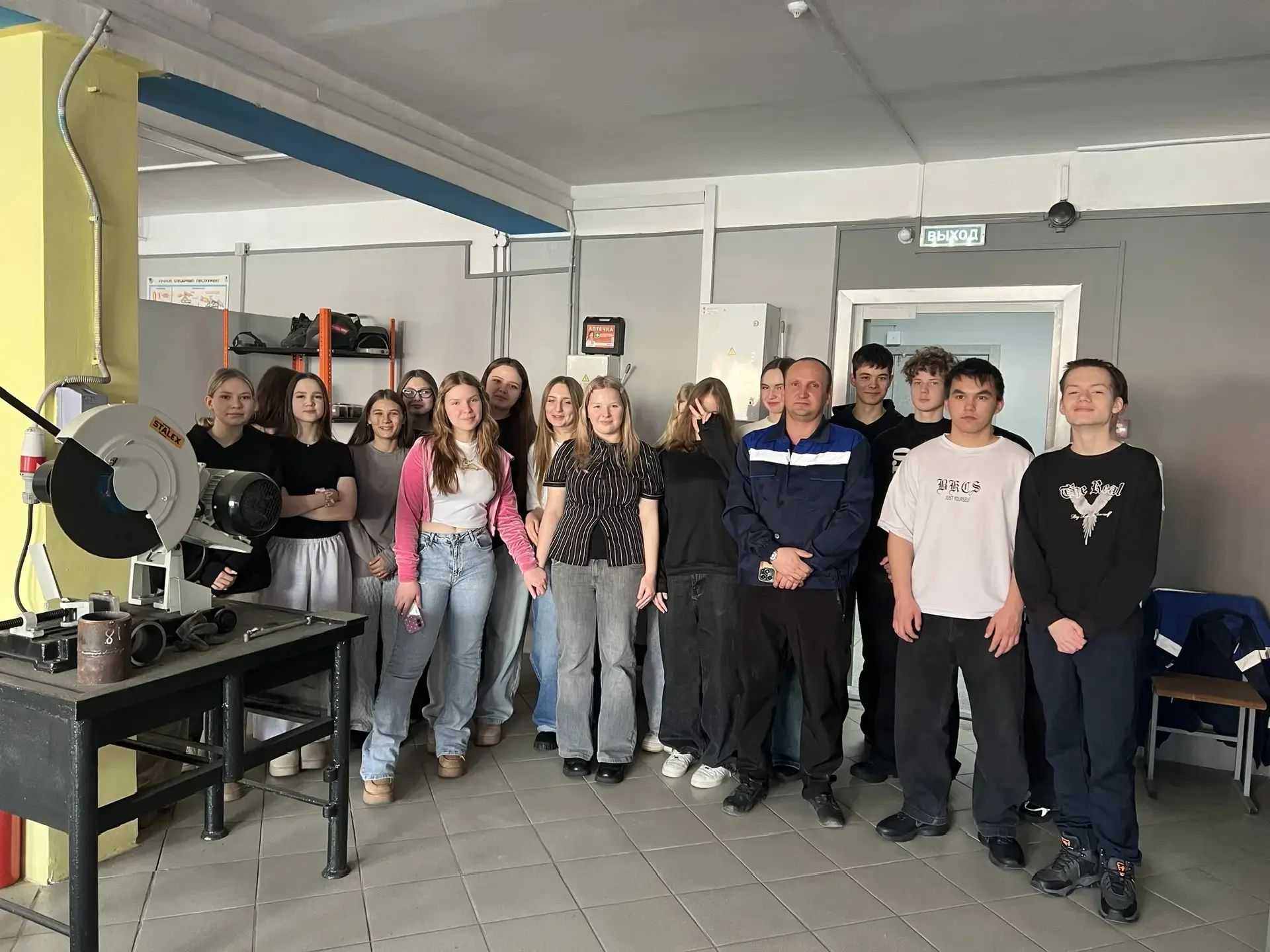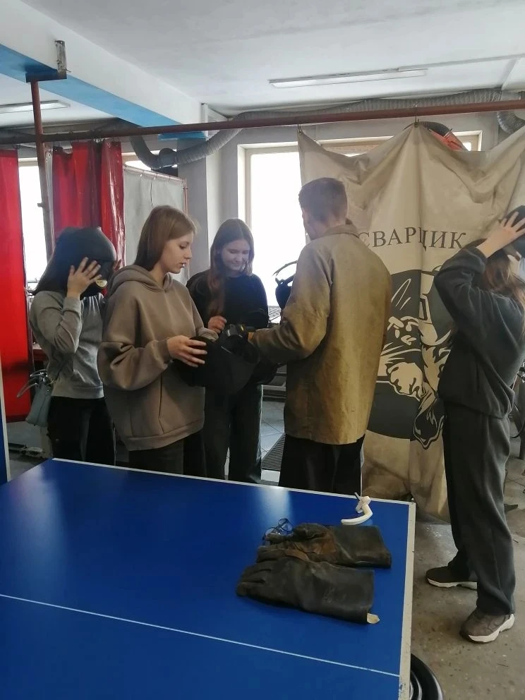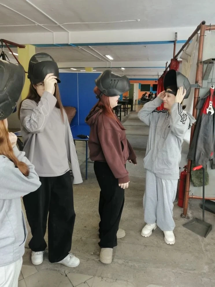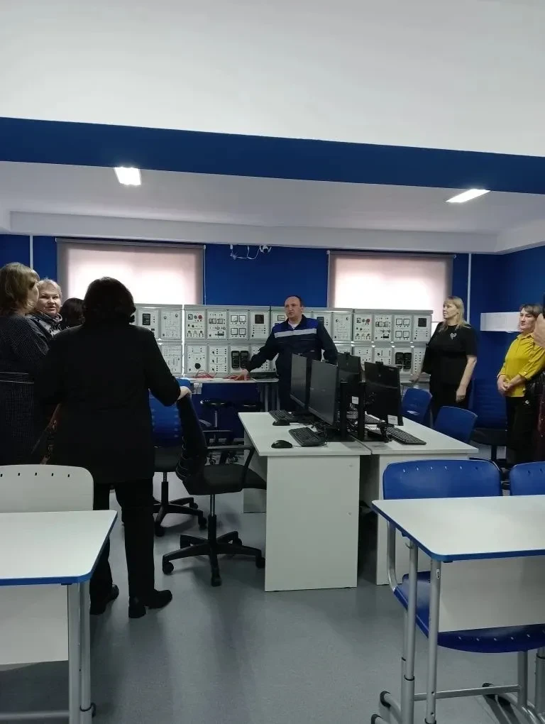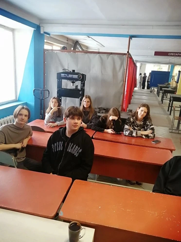 Параллельно группа других педагогов школы — Мельникова Анжелика Викторовна, Лышева Виктория Леонидовна и Радионова Наталья Павловна — посетила профориентационную экскурсию в том же учебном заведении.