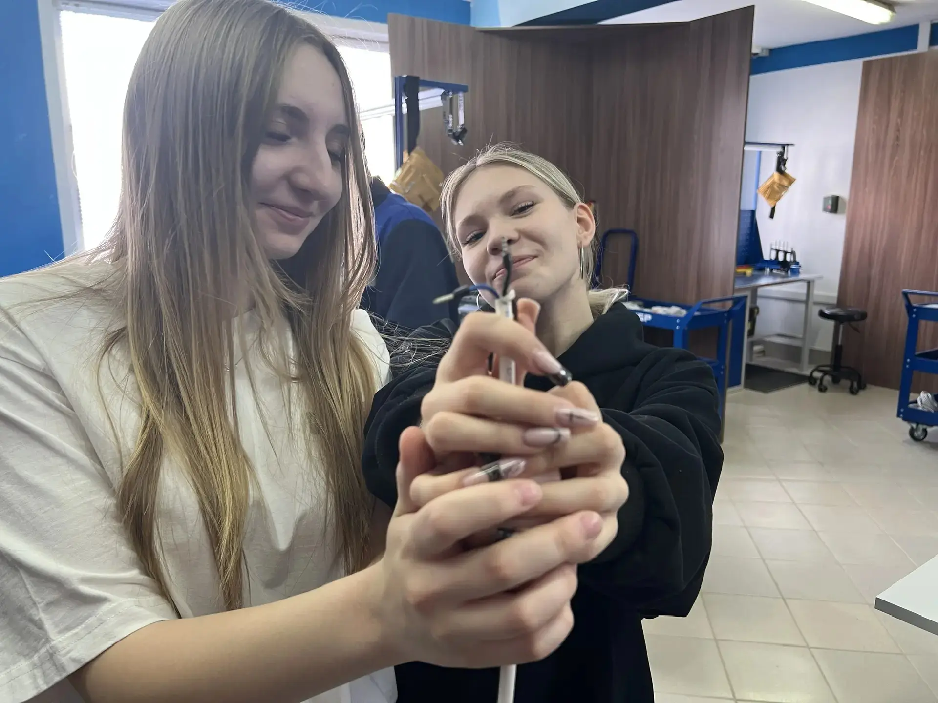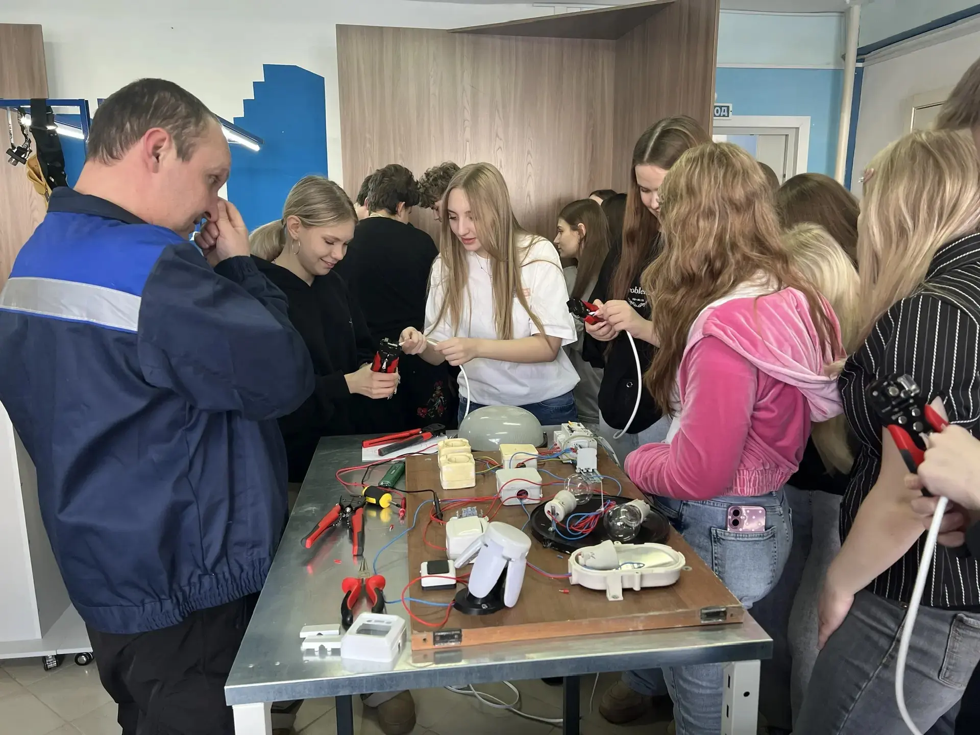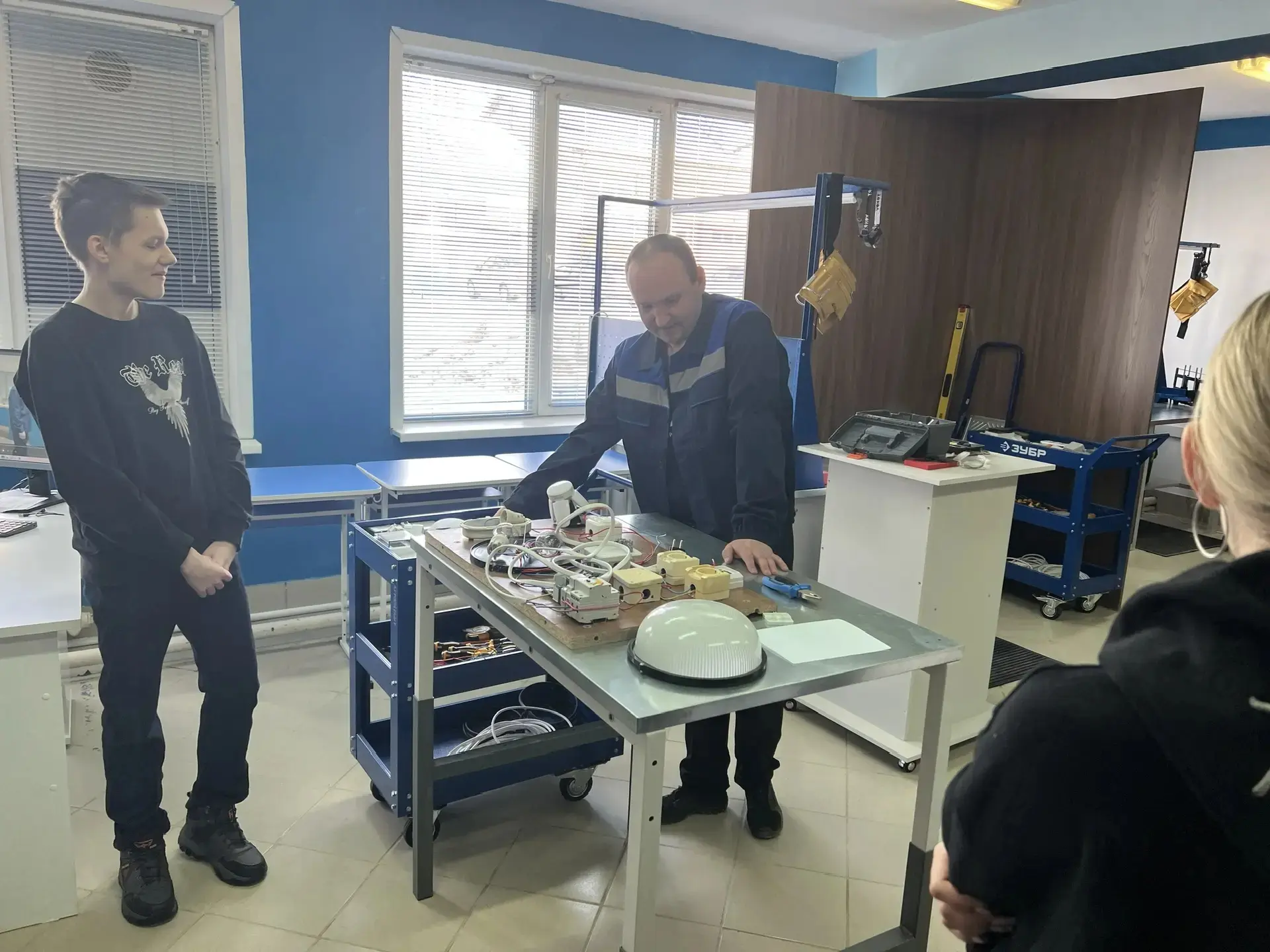 Параллельно группа других педагогов школы — Мельникова Анжелика Викторовна, Лышева Виктория Леонидовна и Радионова Наталья Павловна — посетила профориентационную экскурсию в том же учебном заведении.