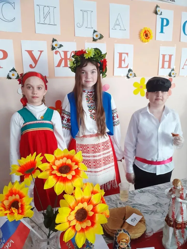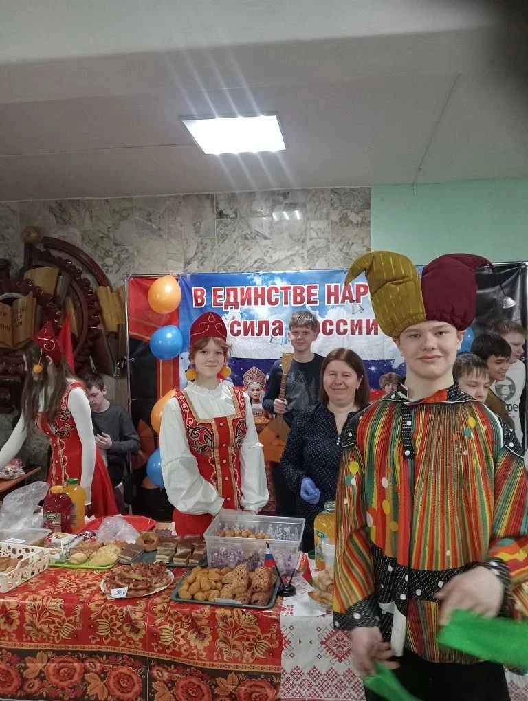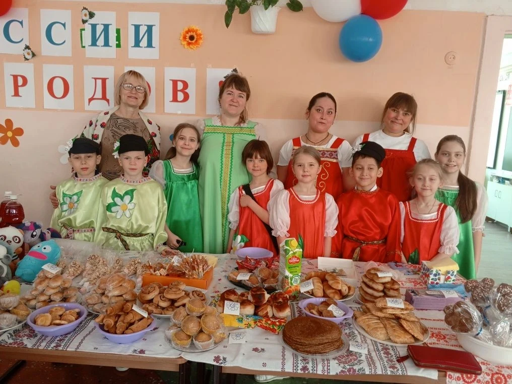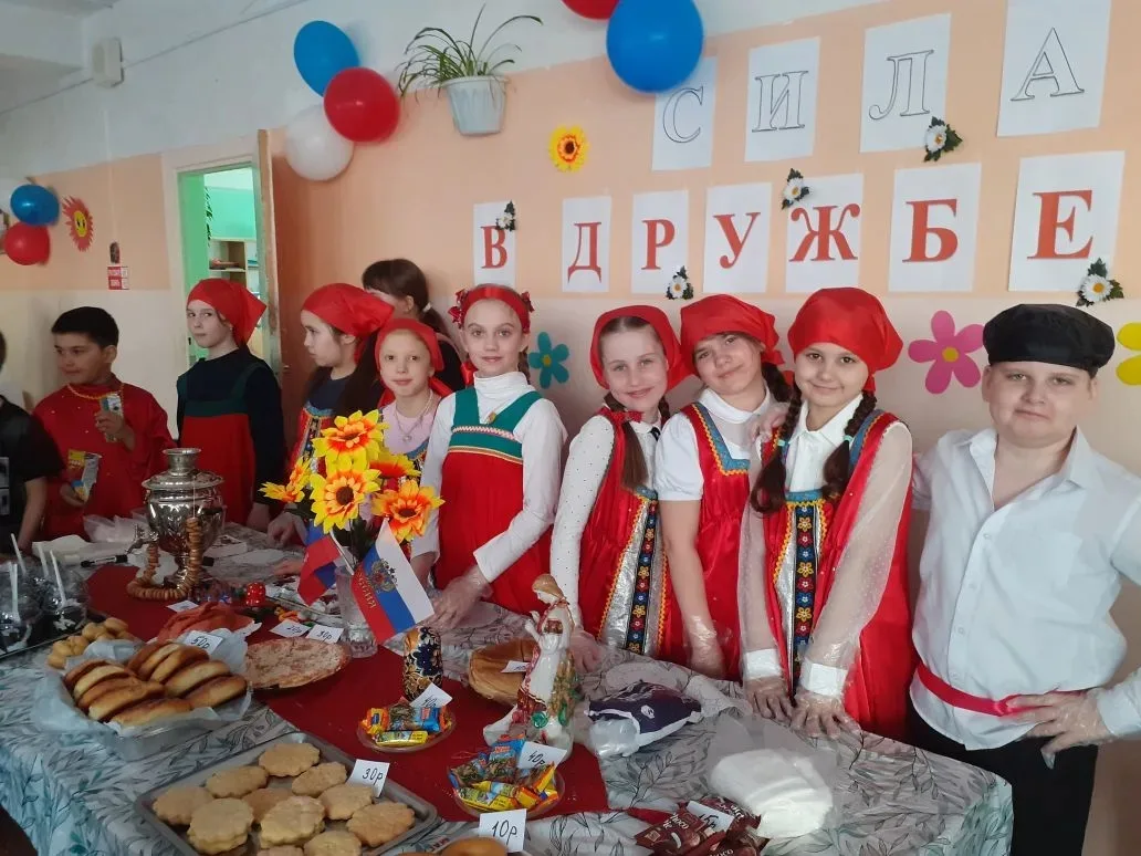 🎉 Каждый класс представил своё национальное подворье: от татарских и башкирских угощений до русских блинов, дагестанских сладостей и якутских блюд. Гости могли не только попробовать национальные деликатесы, но и узнать интересные факты о традициях разных народов России.