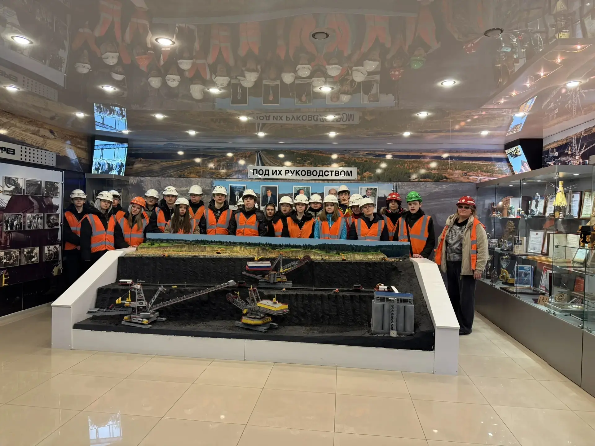 В музее трудовой славы ребята познакомились с историей предприятия, его достижениями и людьми, которые развивали угольную промышленность Шарыпово. А кульминацией экскурсии стала смотровая площадка, откуда открылась впечатляющая панорама производства: огромные роторные экскаваторы и гигантские самосвалы грузоподъёмностью 90 и 130 тонн.