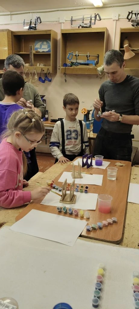 🔲 Под руководством опытного мастера Калашникова Михаила Александровича папы вместе с детьми создали прекрасные деревянные салфетницы для мам. Затем ребята украсили поделки яркими красками, превратив их в настоящие произведения искусства.