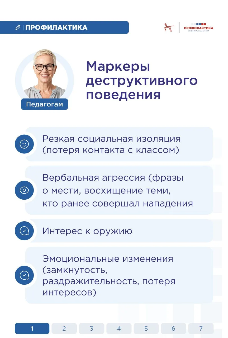 В карточках собрали подсказки для педагогов и родителей. Они помогут отличить обычные подростковые реакции от признаков деструктивного поведения и подскажут правильный алгоритм действий.