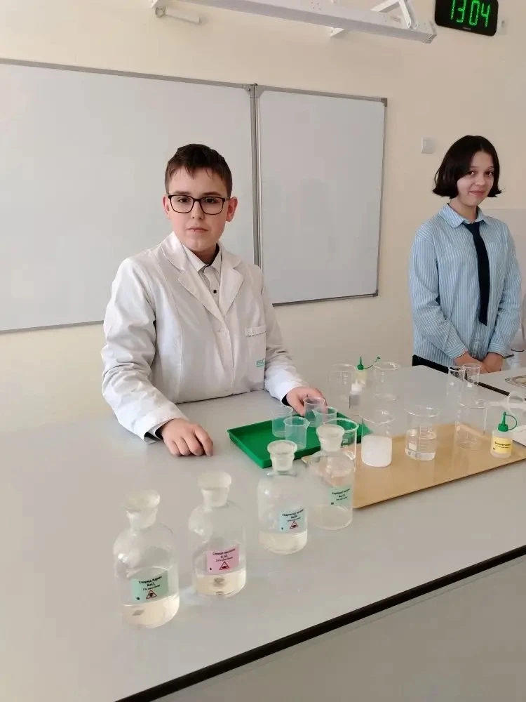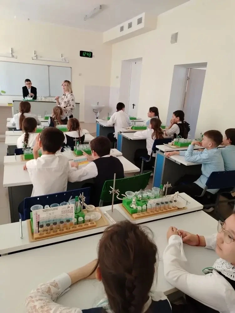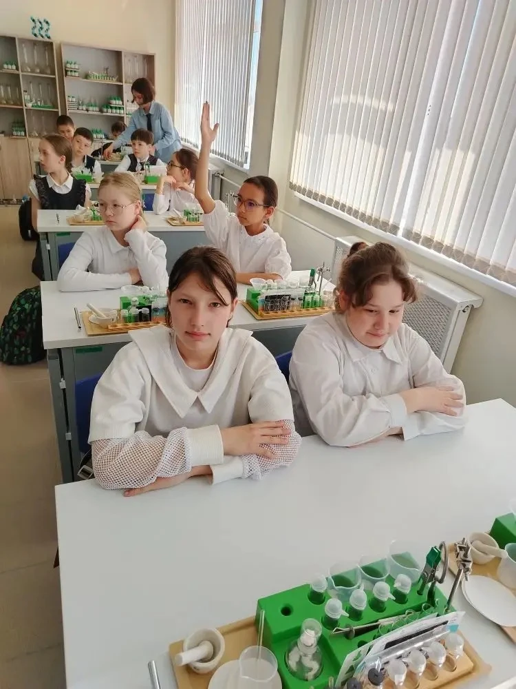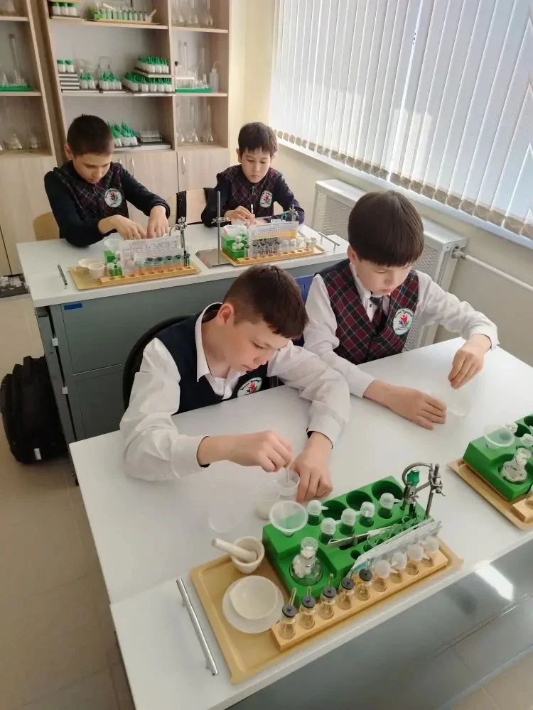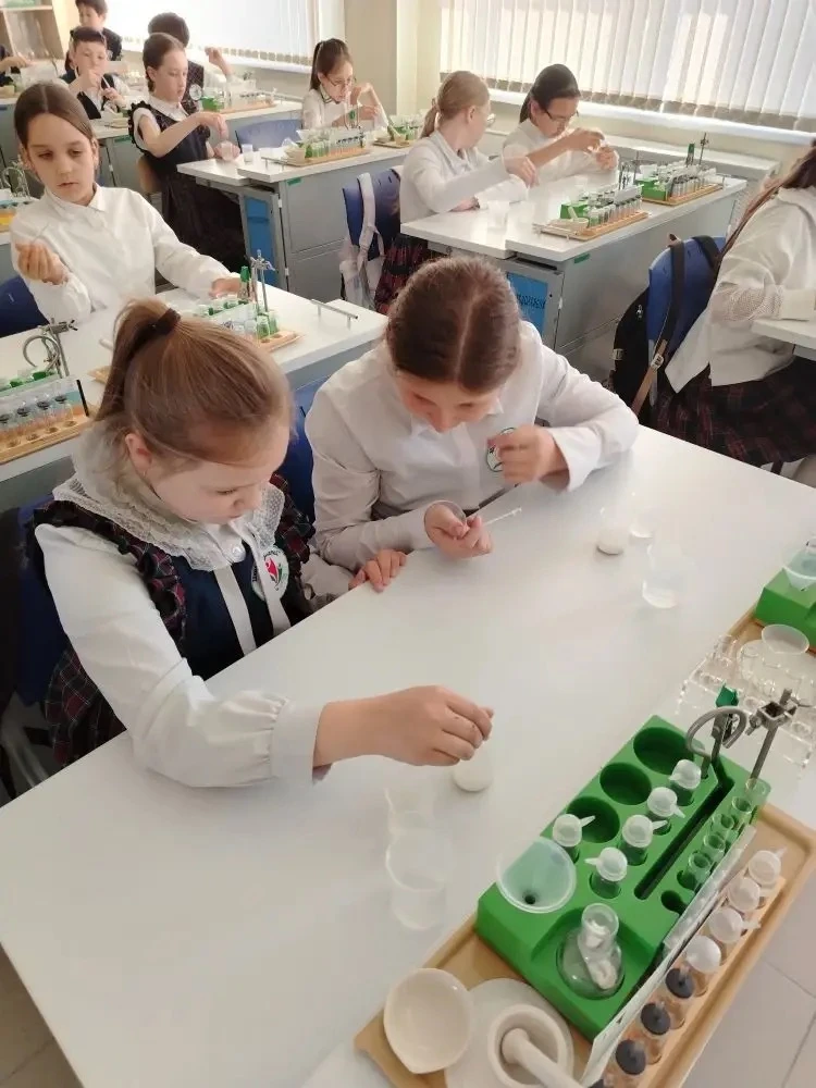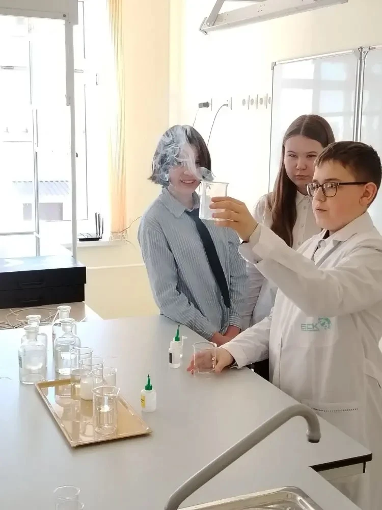 ♻️В рамках недели экологии ученики 4А класса посетили внеклассное мероприятие "Удивительный мир химии" 🌡️🧪под руководством учителя химии Ларисы Владимировны. Ученики 7А класса показали четвероклассникам интересные опыты с химическими веществами. Наши ребята узнали, как появляется дым без огня, как меняют цвет жидкие растворы⚗️.