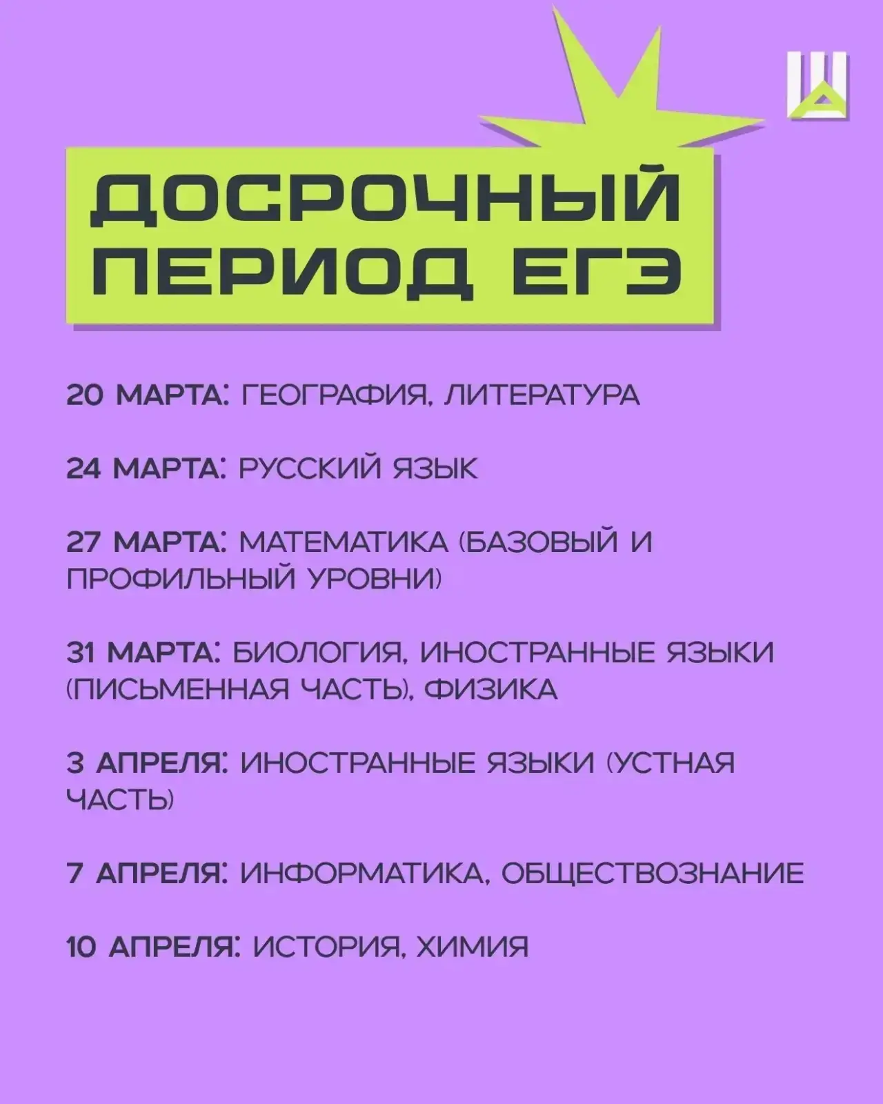 До экзаменов осталось совсем немного, и мы подготовили для вас главный календарь. Сохраняйте, чтобы не пропустить важные даты!