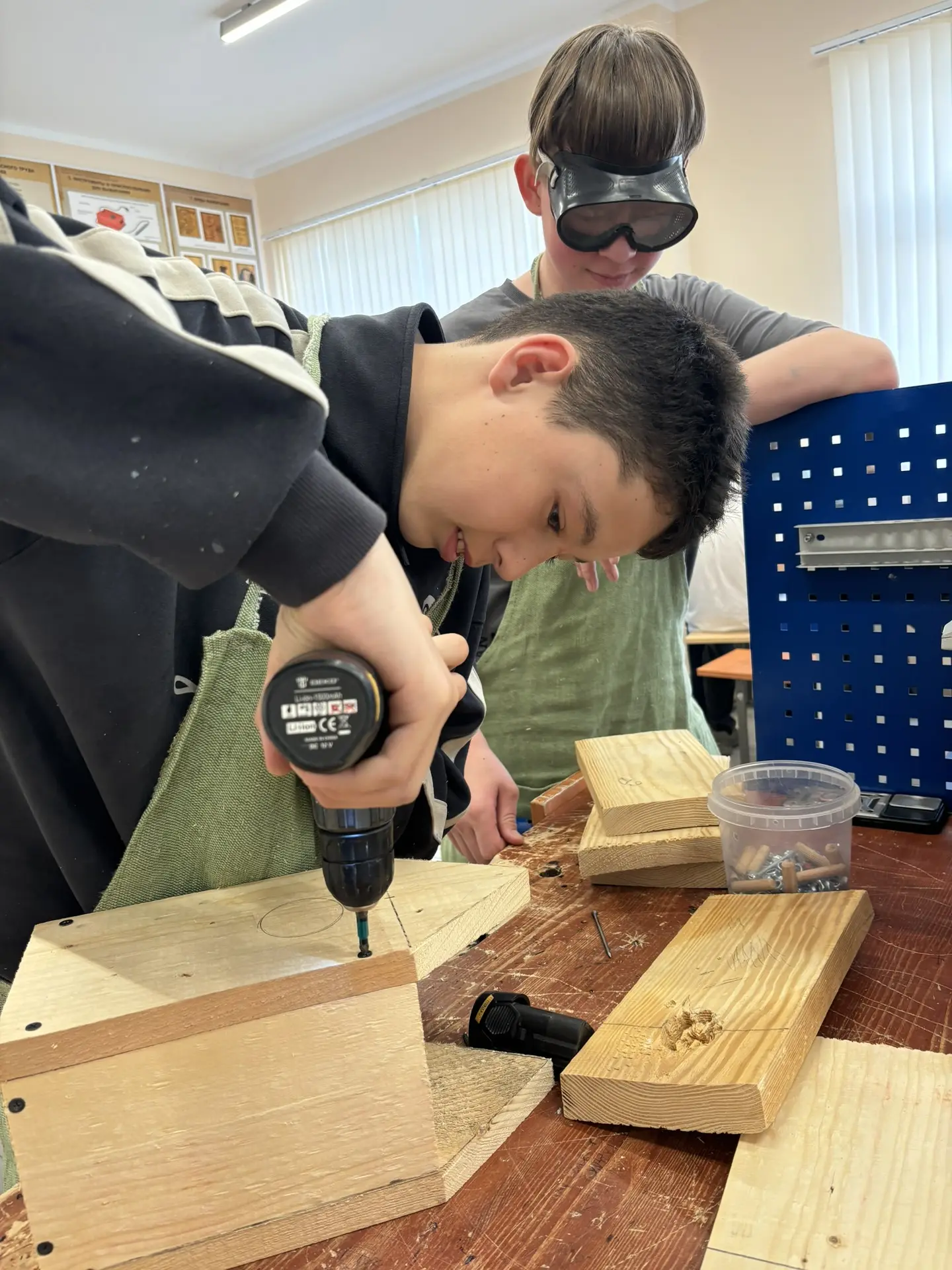 Мальчики узнали о процессе создания домика для семьи пернатых, 🐦 познакомились с тонкостями этого нелегкого дела.
