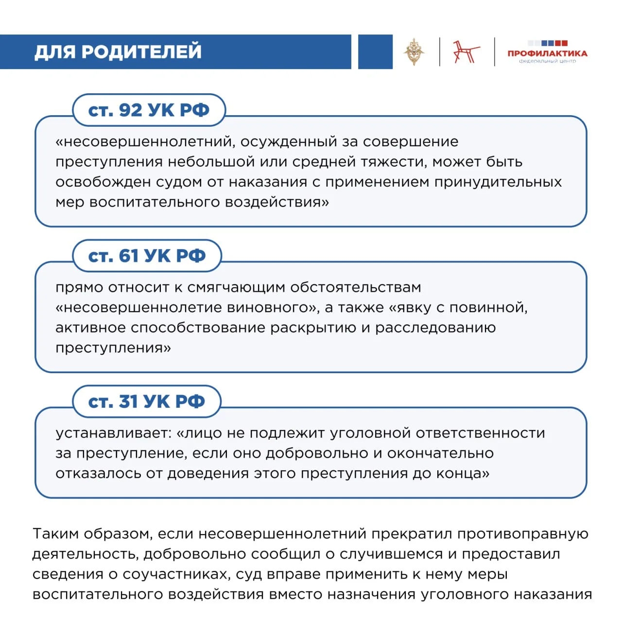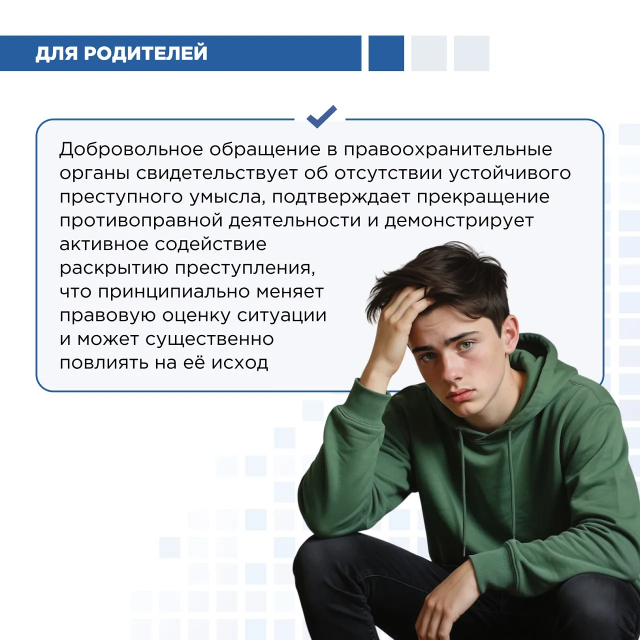 Самое правильное решение — незамедлительно обратиться в полицию. Закон предусматривает защиту несовершеннолетних и учитывает добровольный отказ от противоправной деятельности. Своевременное обращение во многих случаях позволяет минимизировать правовые последствия, тогда как промедление только усугубляет ситуацию.