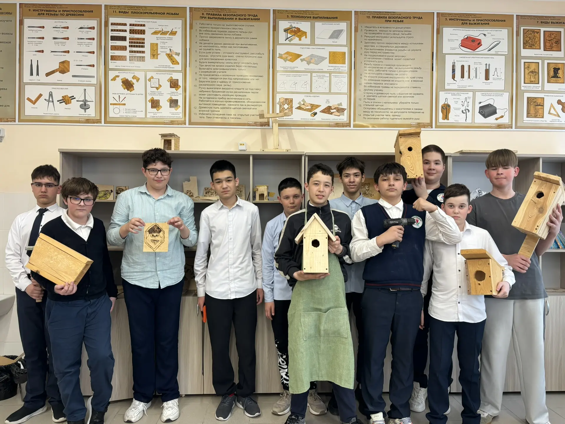 В рамках недели труда (технологии) ученики 7В класса под руководством Лукманова Б.Д. изготовили скворечники. 🔨 🪚
