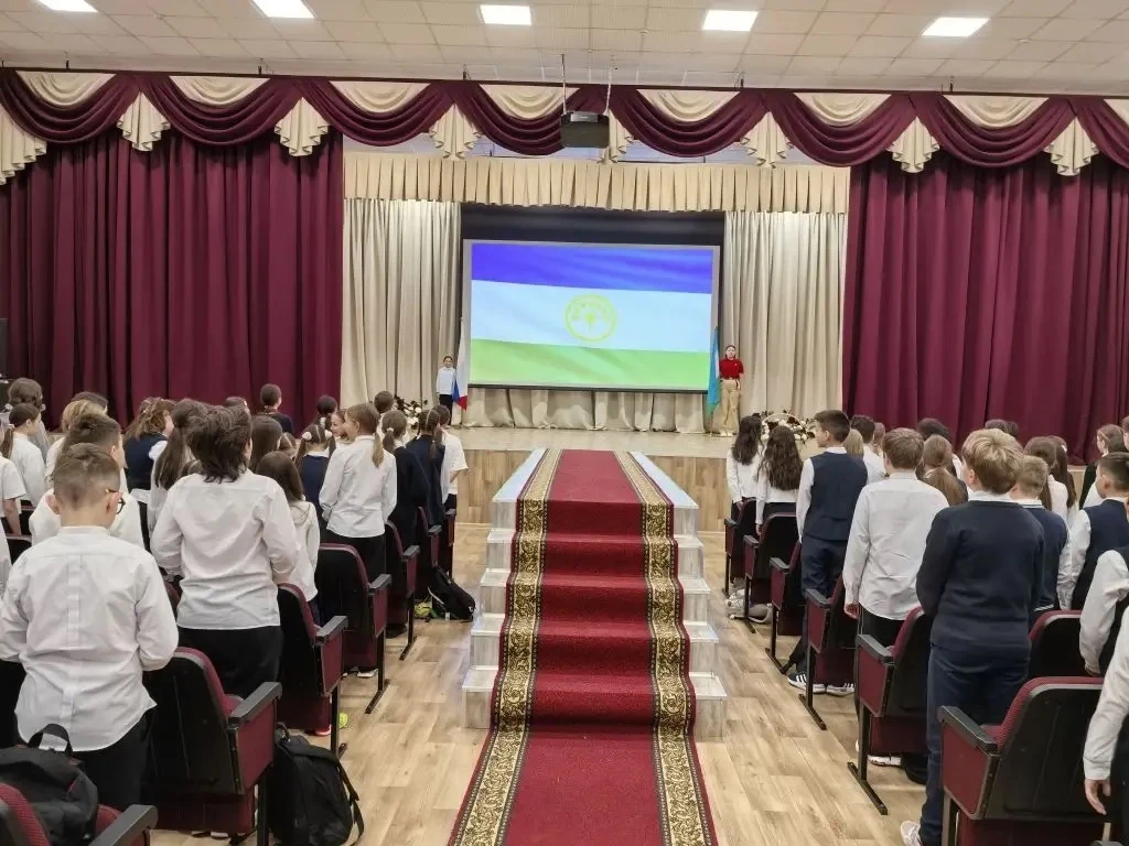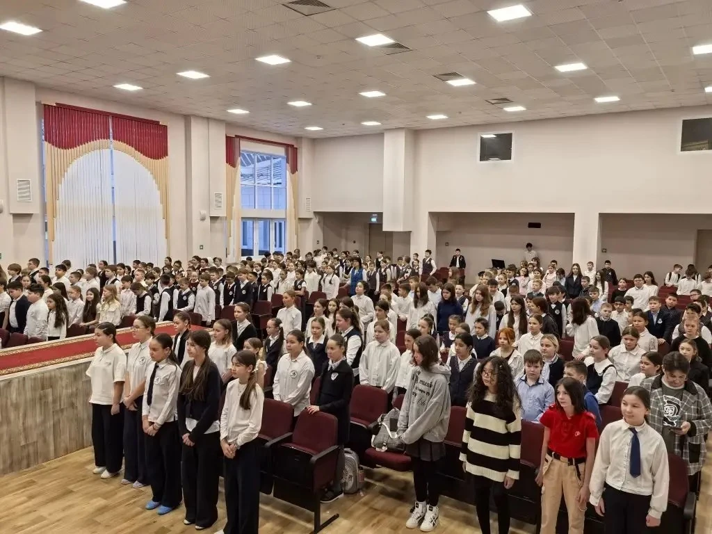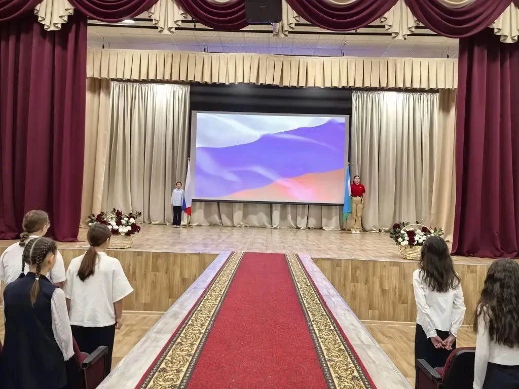 Утро понедельника 02 марта 2026 года в школе традиционно началось с торжественной линейки, церемонии поднятия флагов и исполнения гимна Российской Федерации.