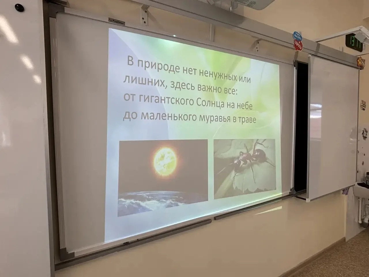 В 6г классе прошел увлекательный и познавательный урок, посвященный экологии. Мы обсудили, как важно бережно относиться к природе, ведь в ней нет ничего лишнего. Каждое существо, от гигантского Солнца до крошечного муравья, играет свою уникальную роль в экосистеме.