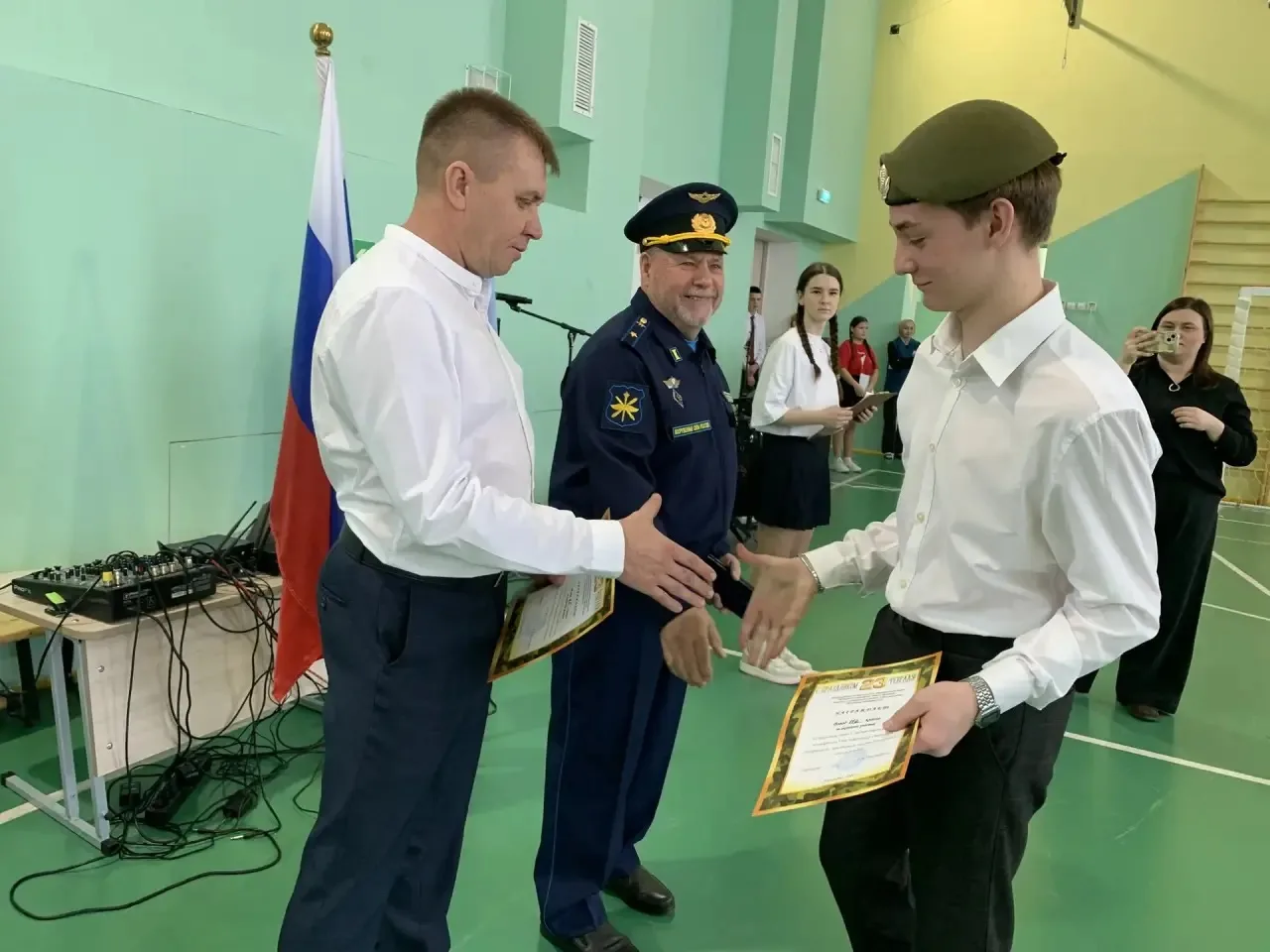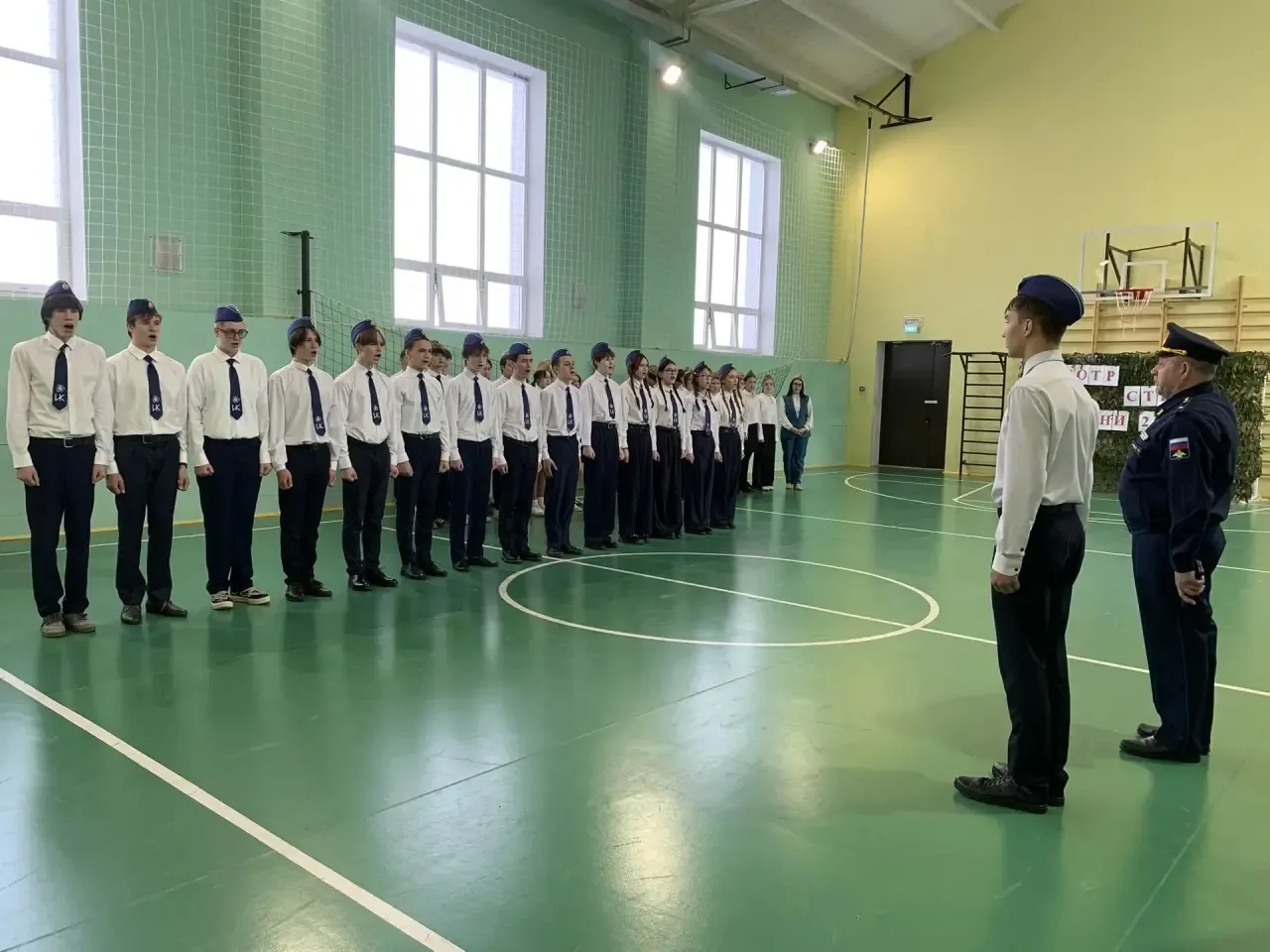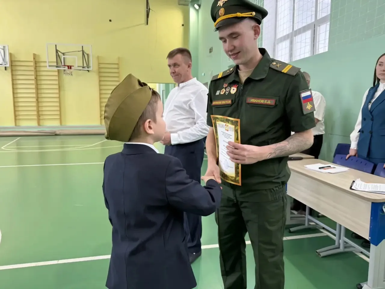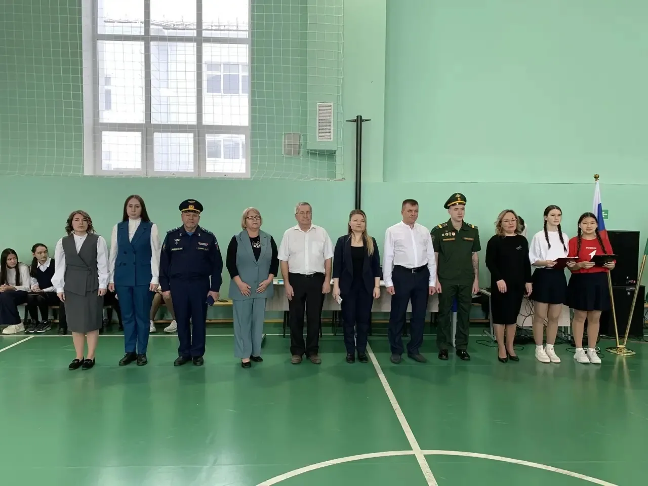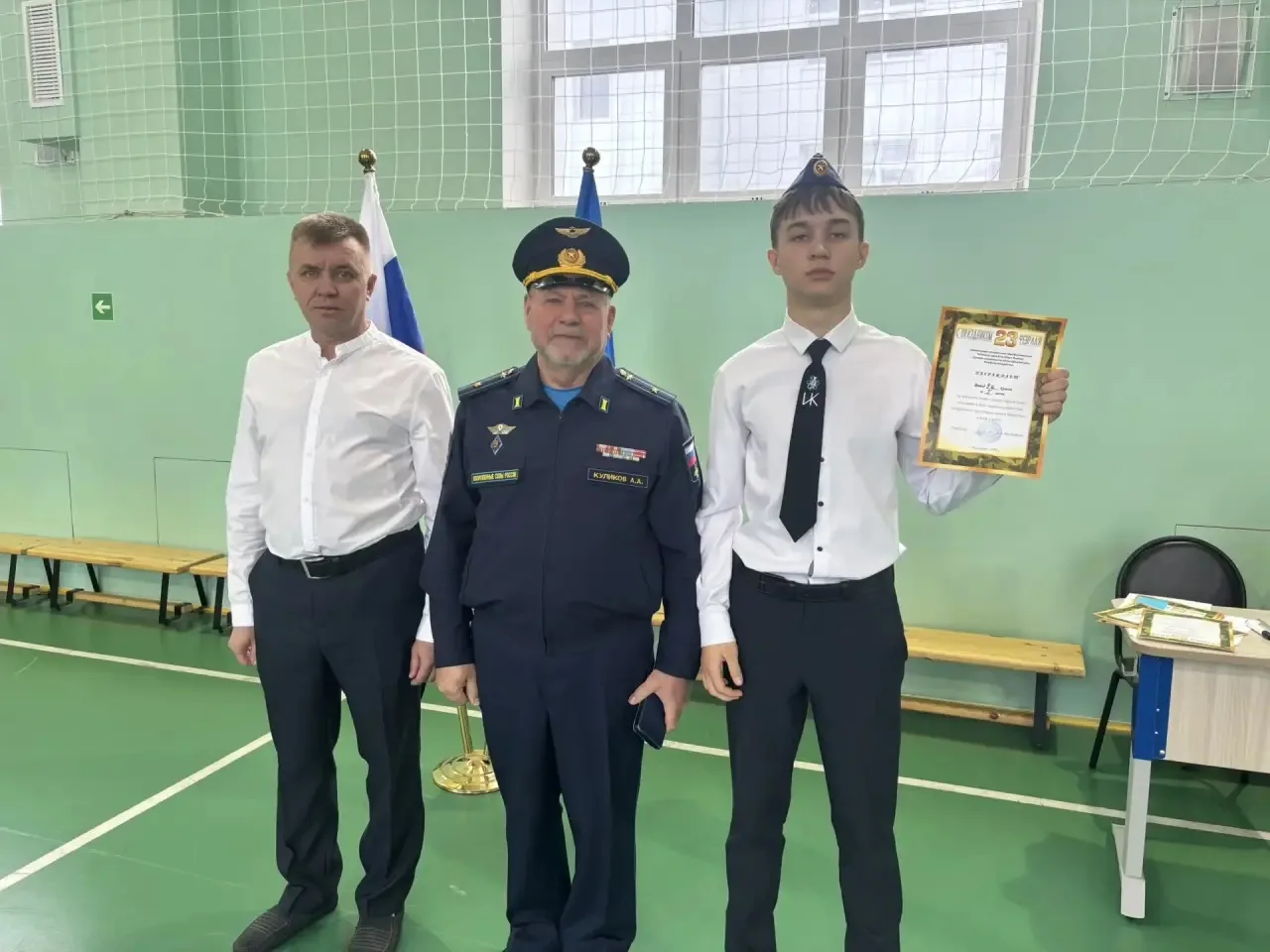 📌Открывая мероприятие, заместитель директора по воспитательной работе Латыпова Гульнара Фидусовна и учитель ОБРЗ Куликов Александр Александрович поздравили всех присутствующих с прошедшим праздником. Пожелали ученикам развиваться, стремиться к успеху, но самое главное – быть патриотами своей Родины, равняться на героев и защитников нашего Отечества.