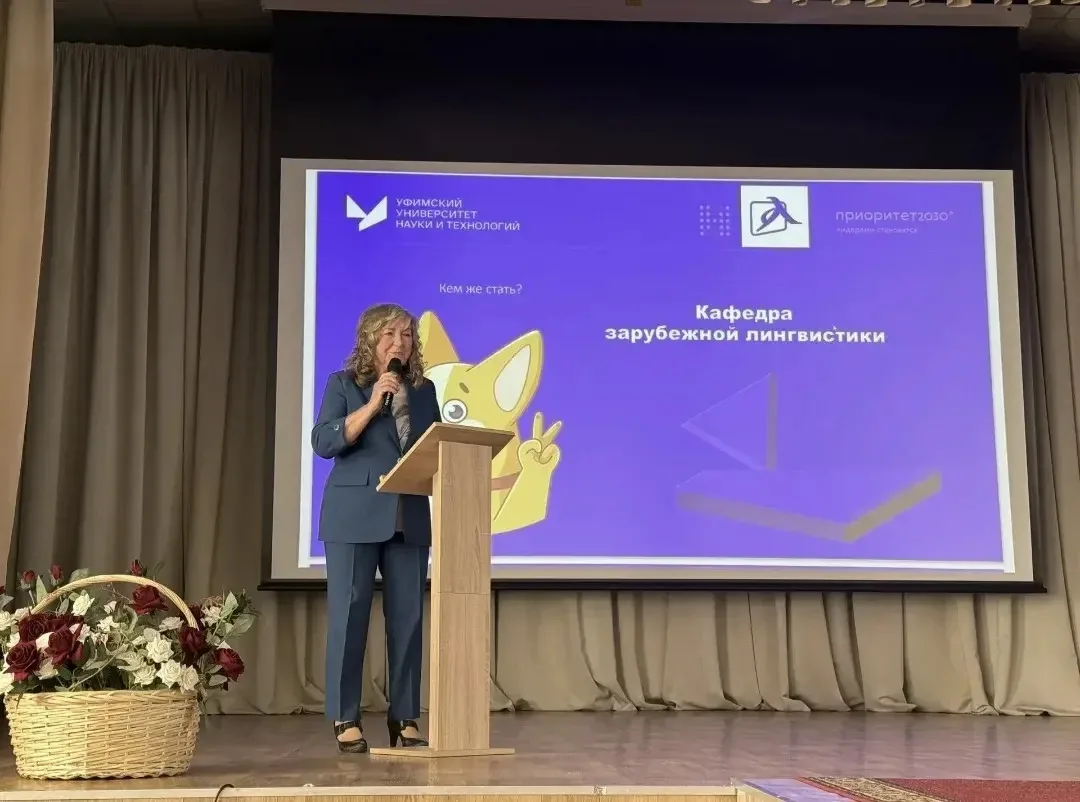 16 апреля 2026 года в рамках профориентационной работы состоялась встреча обучающихся выпускных классов с Рябцовой Надеждой Ивановной, доцентом кафедры зарубежной лингвистики Уфимского университета науки и технологий (УУНиТ).