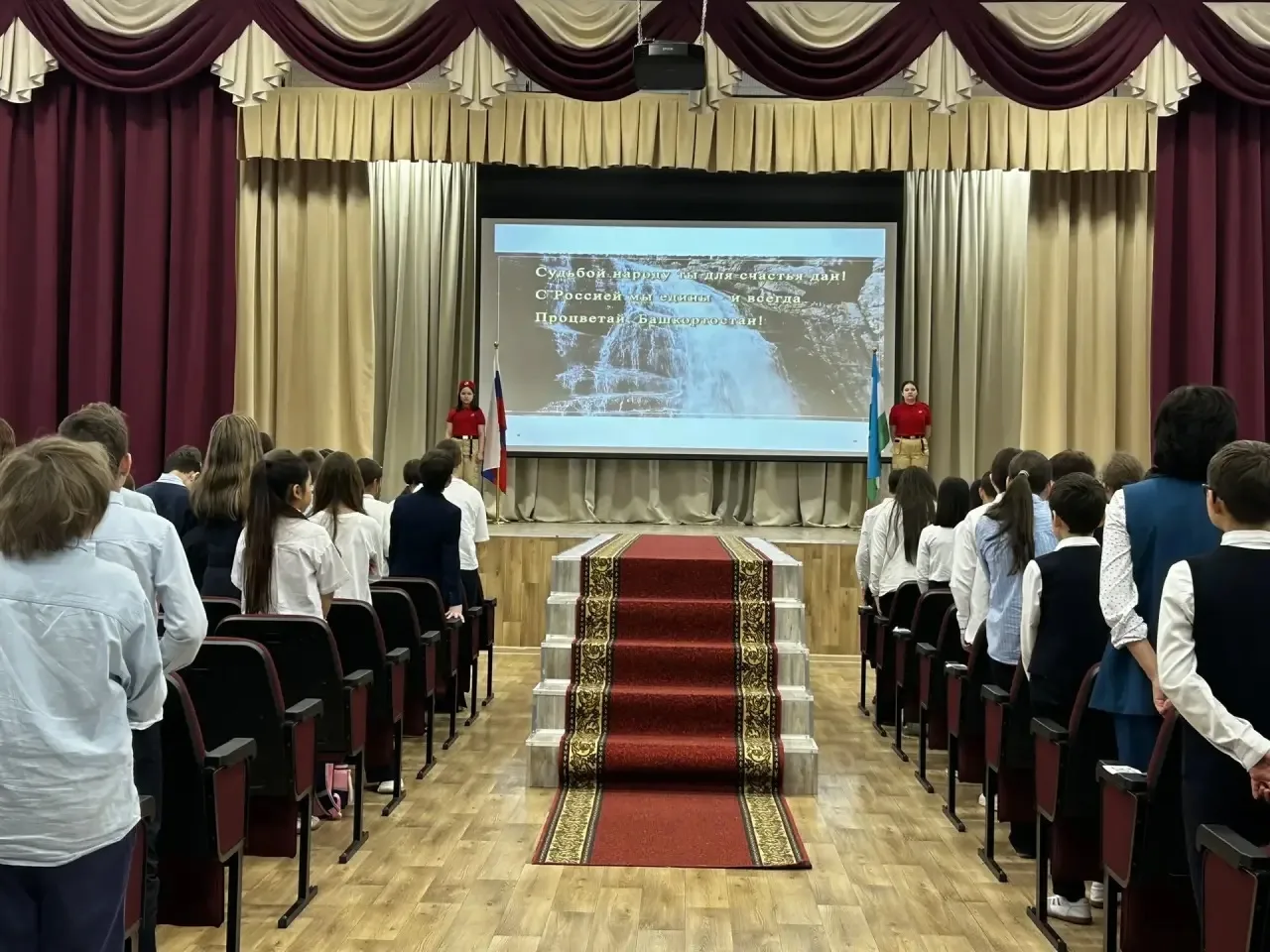 🇷🇺Новая учебная неделя в нашей школе началась с торжественной линейки поднятия флагов РФ и РБ, и исполнения гимнов.