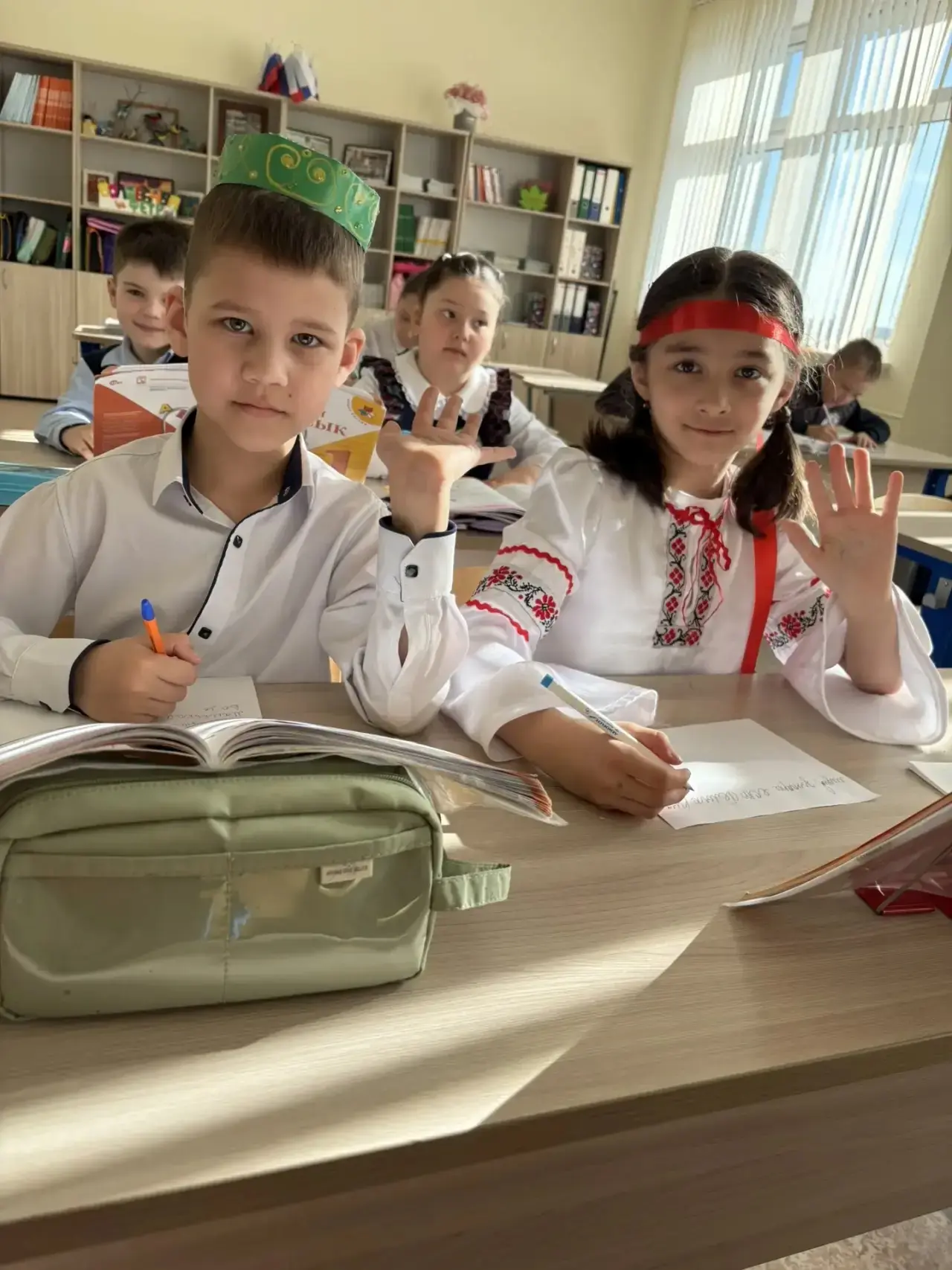 В этот день дети присоединились к акции "Учусь в национальном костюме", за что были горды.
