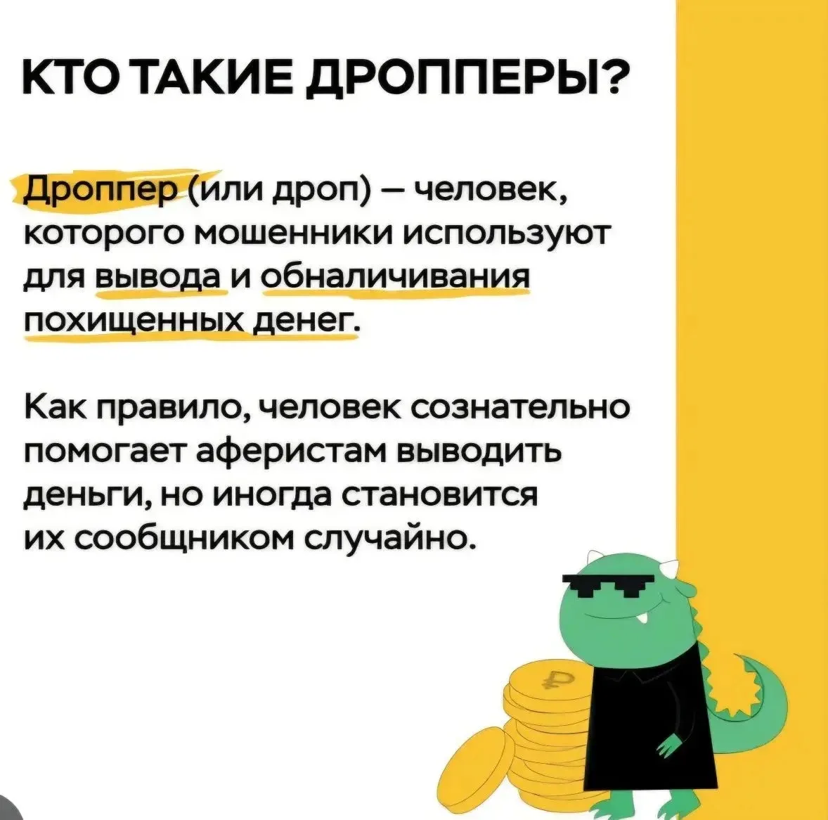 Сегодня состоялся разговор социального педагога с 10-ти классниками о дропперстве - деятельности, при которой лицо предоставляет свои банковские карты , доступы к электронным кошелькам или личный кабинет для транзита денежных средств. В ходе беседы были выявлены простые правила личной безопасности :