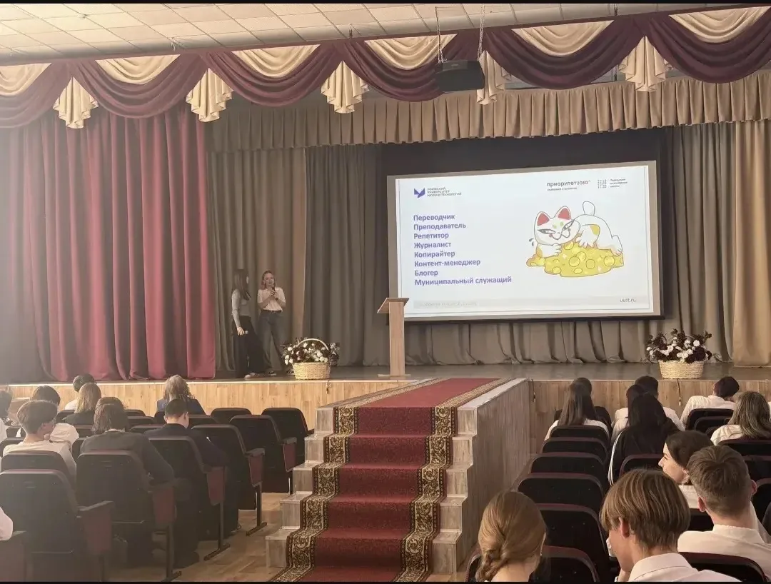 Особый интерес у старшеклассников вызвало выступление студентов 4-го курса кафедры зарубежной лингвистики, которые поделились личным опытом обучения, рассказали о студенческих научных проектах и перспективах трудоустройства. Мероприятие прошло в познавательной и дружественной атмосфере.