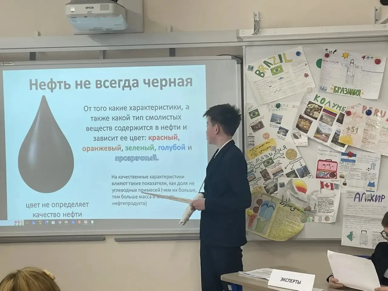 Сегодня в рамках предметной недели в 7А классе прошла научно-практическая конференция «Нефть: польза или вред?». Эксперты рассказали, как образуется это полезное ископаемое, как его добывают, какие продукты из нефти мы используем ежедневно. А вот чем опасна нефть ребята узнали от экологов. А еще все вместе искали месторождения нефти на карте и разгадывали интересные филворды.