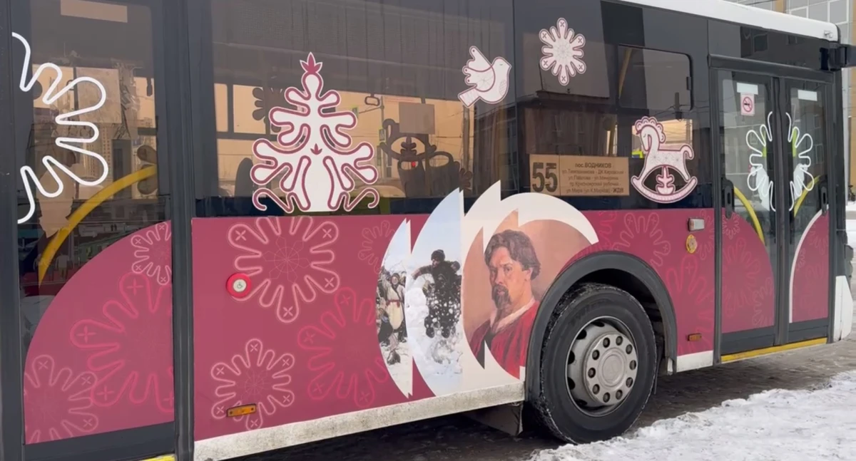 Маршрут №55 будет курсировать до 24 января, украшенный в честь XX зимнего фестиваля искусств.