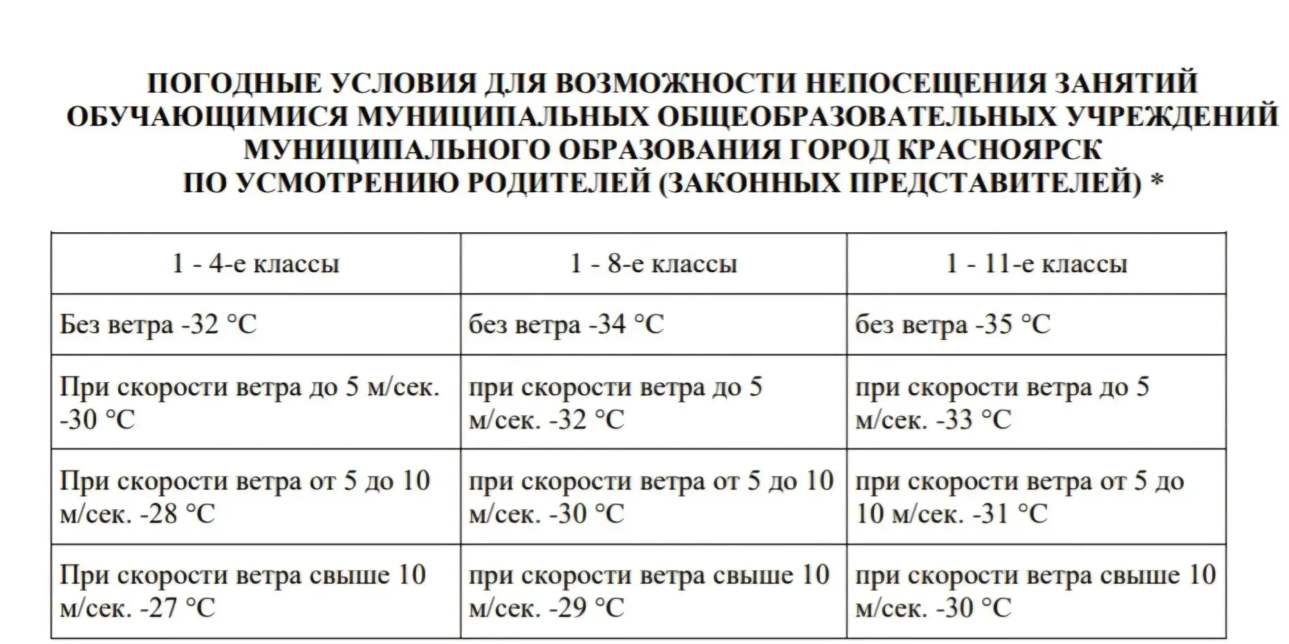 В город идут настоящие сибирские морозы. Температура, при которой ребёнок может остаться дома:
